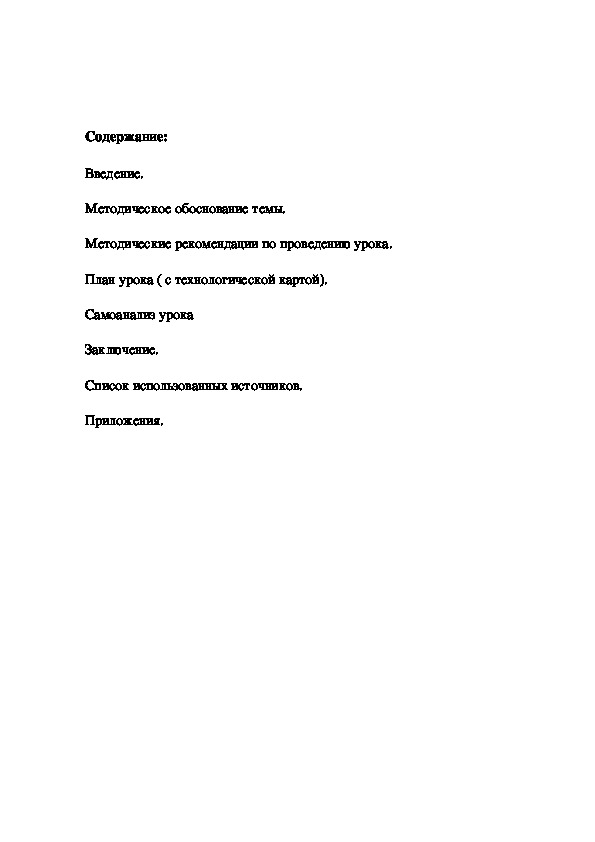 План урока ( с технологической картой).