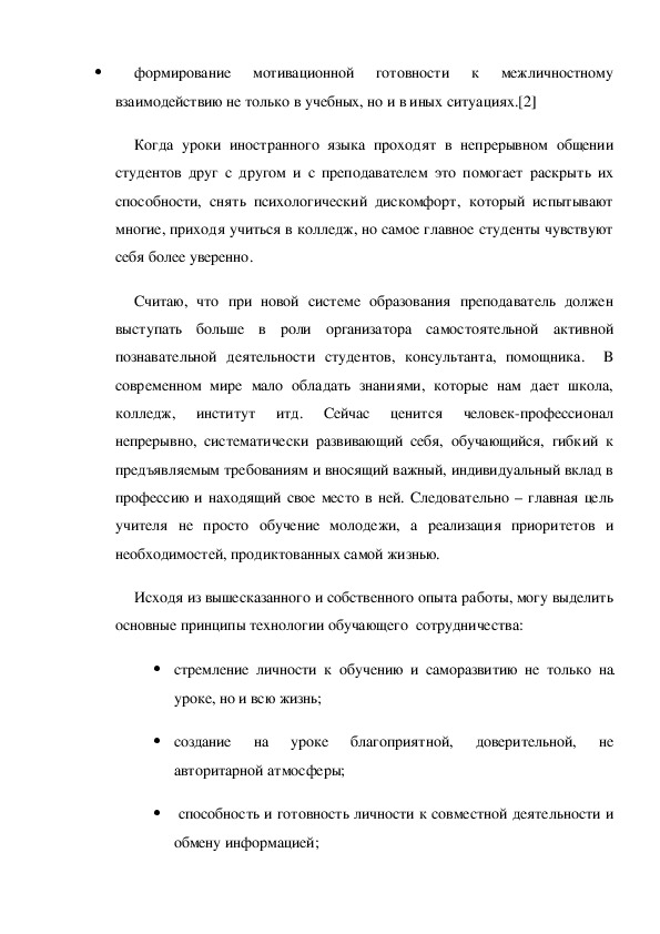 основные принципы технологии обучающего сотрудничества: