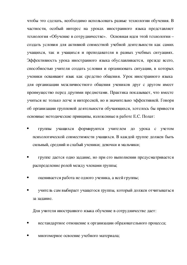 Для учителя иностранного языка обучение в сотрудничестве дает: