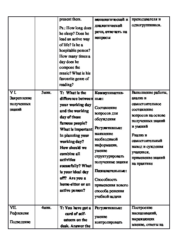 Самоанализ урока