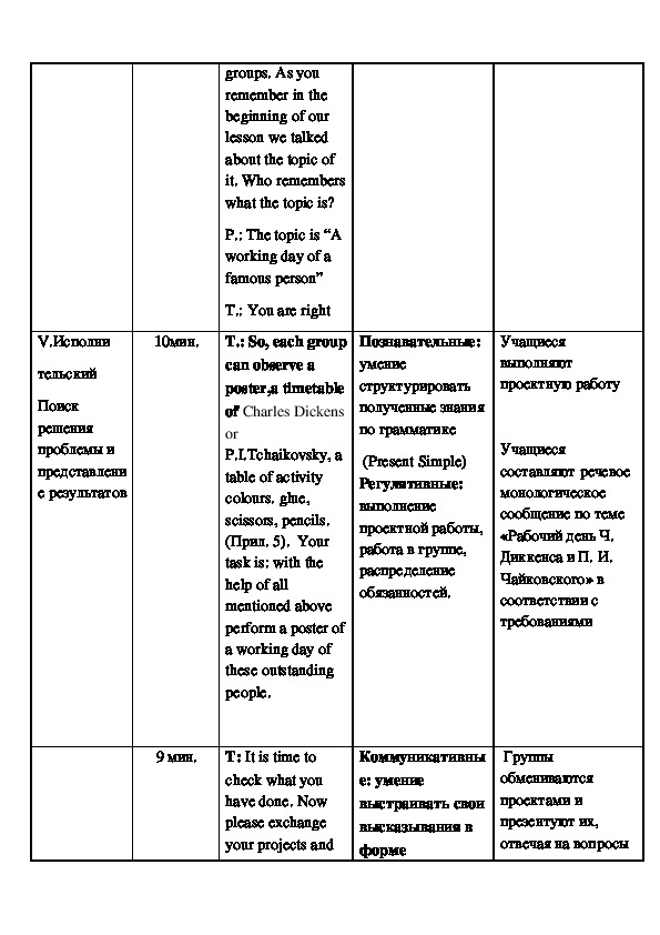 В процессе урока «Обычный день известного человека» происходит