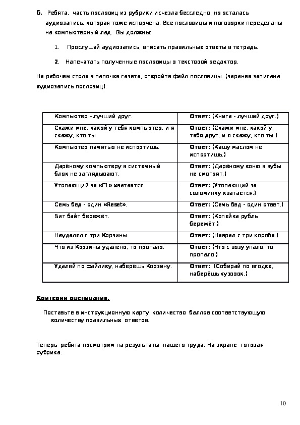 На рабочем столе в папочке газета, откройте файл пословицы. (заранее записана
