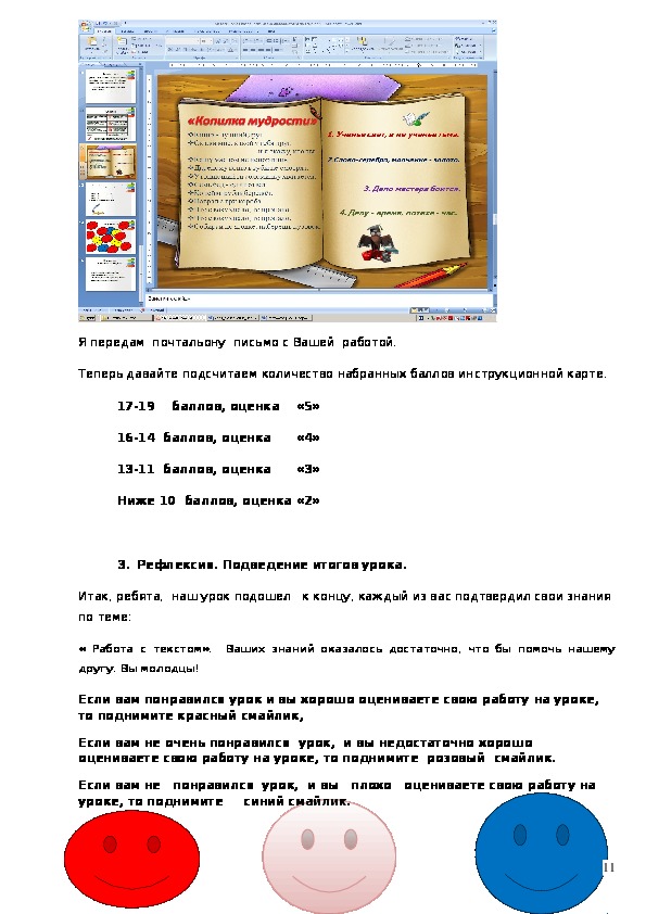 оцениваете свою работу на уроке, то поднимите розовый смайлик.