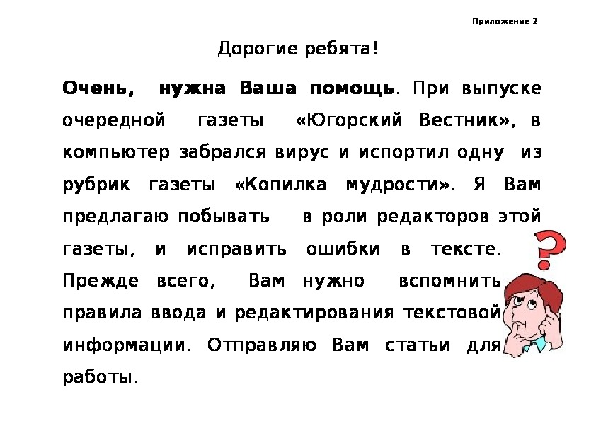 « Работа с текстом». Ваших знаний оказалось достаточно, что бы помочь нашему