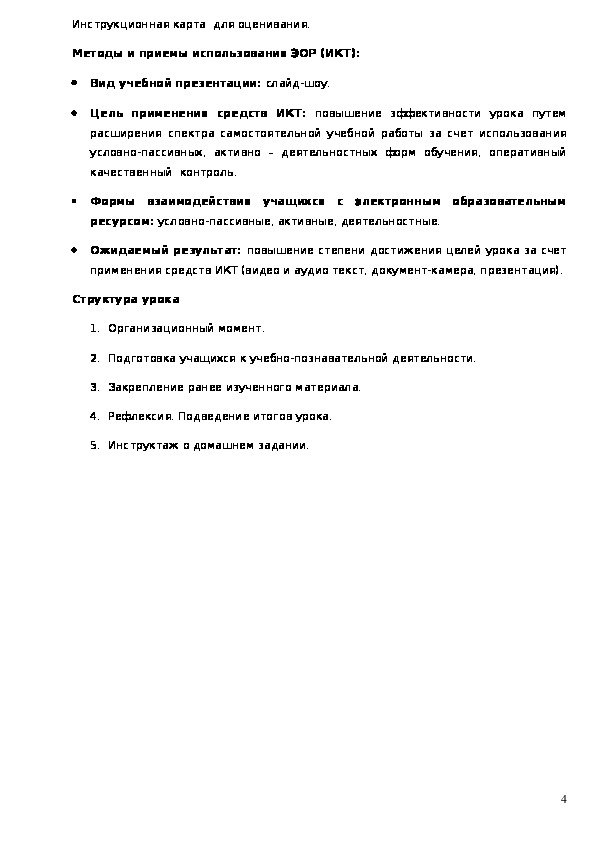 применения средств ИКТ (видео и аудио текст, документ-камера, презентация).