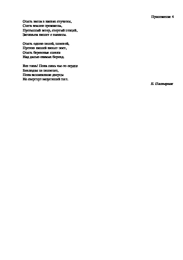 Каждому ученику раздается одно стихотворение Б.Л. Пастернака (Приложение №4).