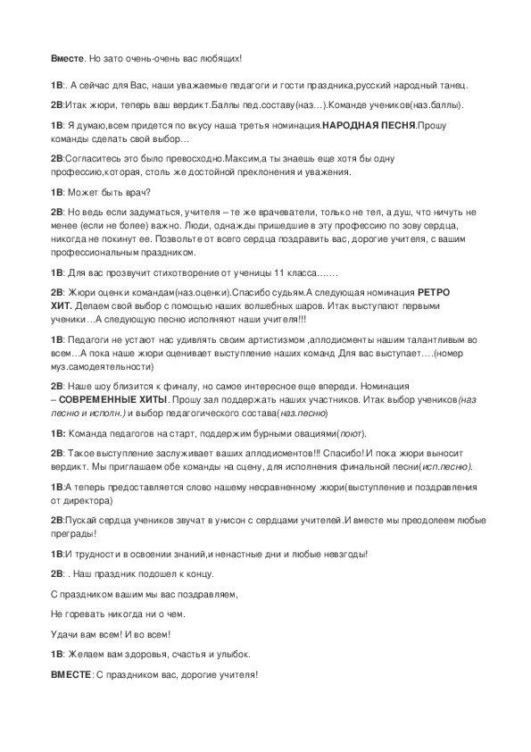 1В: Дорогие наши учителя, примите наши самые искренние поздравления с праздником и от