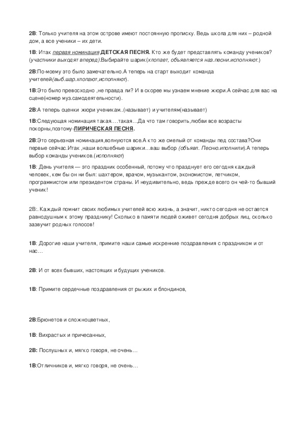 1В: Итак первая номинация ДЕТСКАЯ ПЕСНЯ. Кто же будет представлять команду учеников?