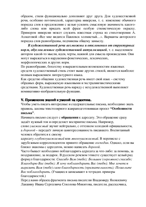 образовательные: обобщение и углубление знаний о разговорном и художественном стилях речи; дать сведения об особенностях таких речевых жанров, как письмо и SMS.
