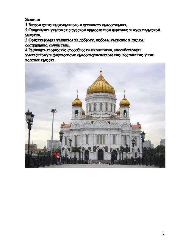 2.Ознакомить учащихся с русской православной церковью и мусульманской
