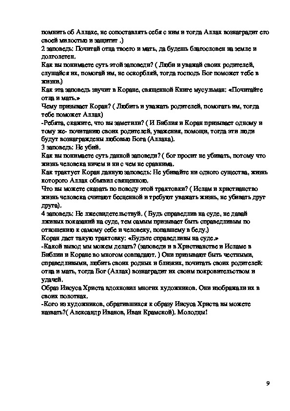 4.Развивать творческие способности школьников, способствовать умственному и физическому самосовершенствованию, воспитанию у них волевых качеств.Методическая разработка "Заповеди Иисуса Христа - основа духовности человечества"