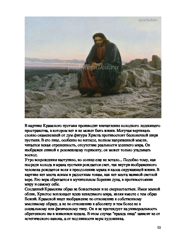 Созданный Крамским образ не божественен и не сверхестествен. Имея земной