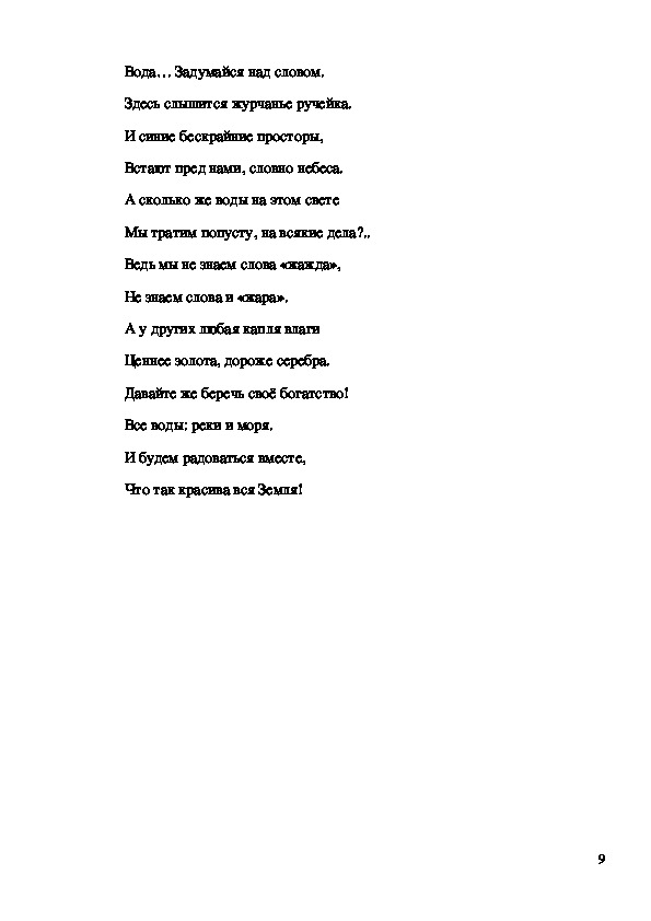 бережно нужно относится к воде. Проблема пресной воды стоит перед