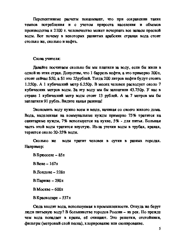 4. Развить у учащихся экономное отношение к потреблению воды.