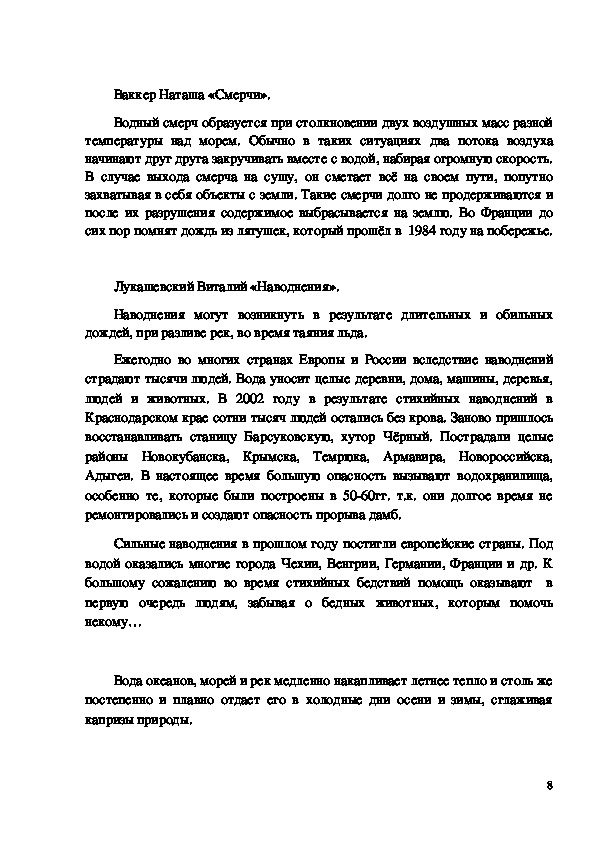 2. Расширить кругозор детей о таких природных явлениях, связанных с водой, как: цунами, смерчи, наводнения.