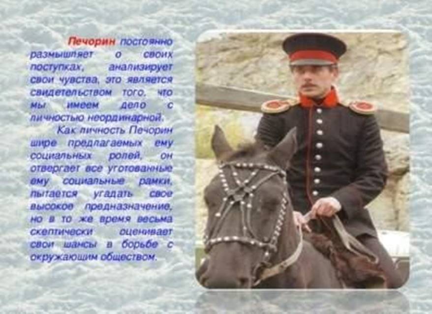 Печорин – физически сильный и выносливый человек. Он наделен незаурядным умом,