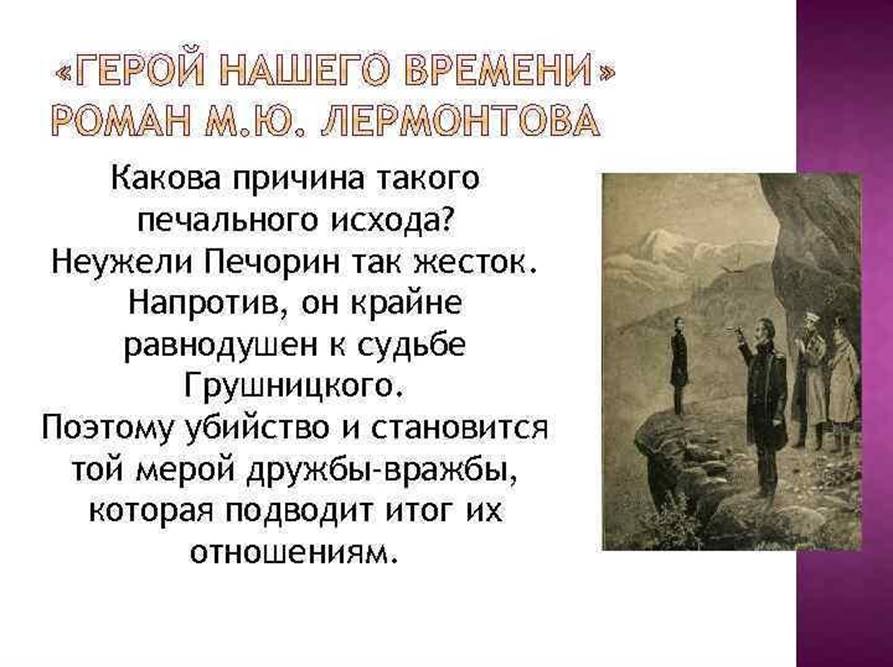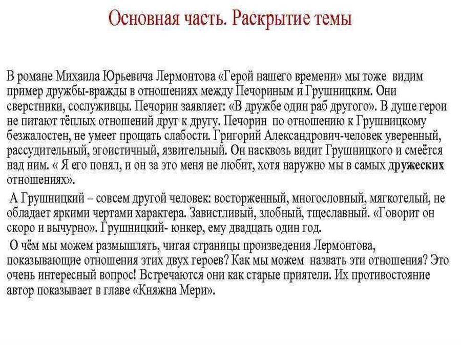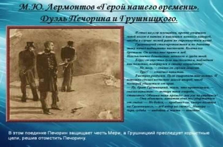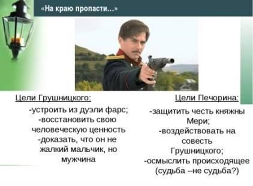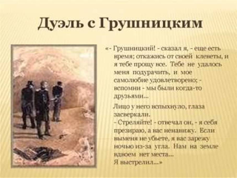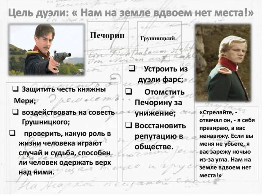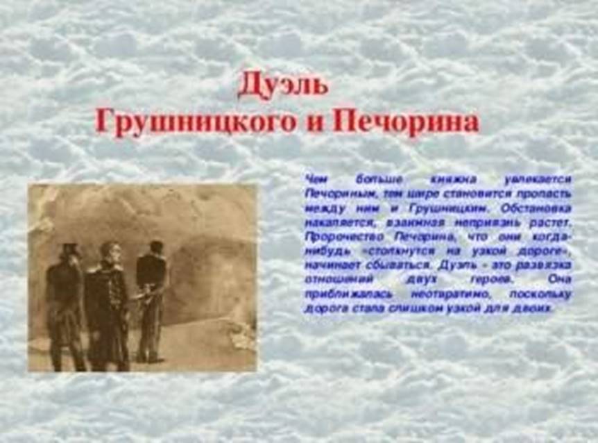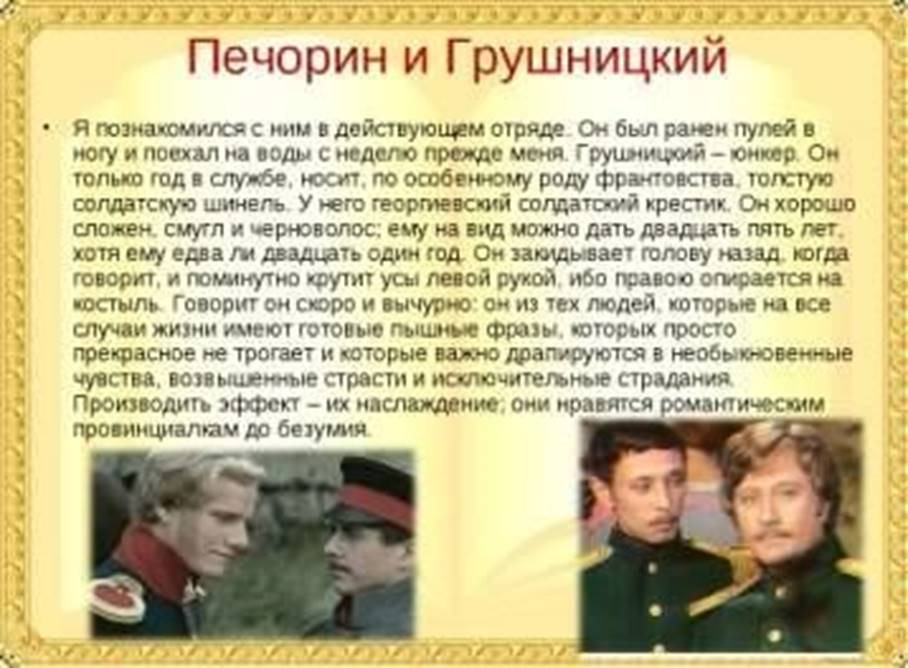 ненависти и стыда раскаяния до конца. Таково вкратце противостояние, которое вели два главных героя Печорин и Грушницкий.