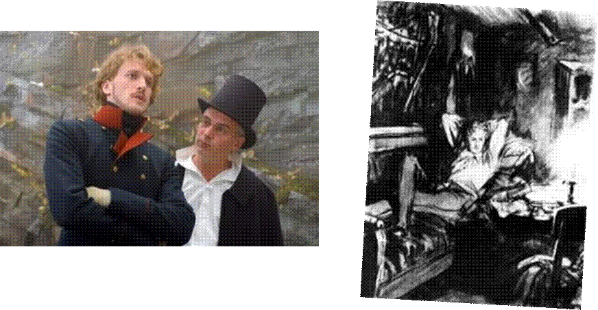 Грушницкий отправляется к княжне Мери в новом мундире, пахнущий духами, расфранченный. Этот