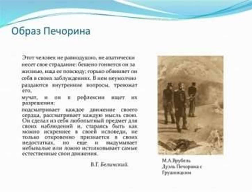 Вот почему В.Г. Белинский сказал, что «Печорин глубоко страдает», не находя применения необъятным силам своей душу.