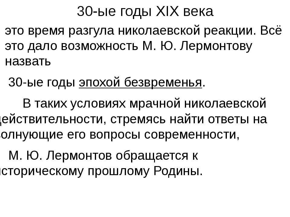 Главный герой романа - Печорин - жил в тридцатые годы девятнадцатого столетия. Это время можно охарактеризовать, как годы