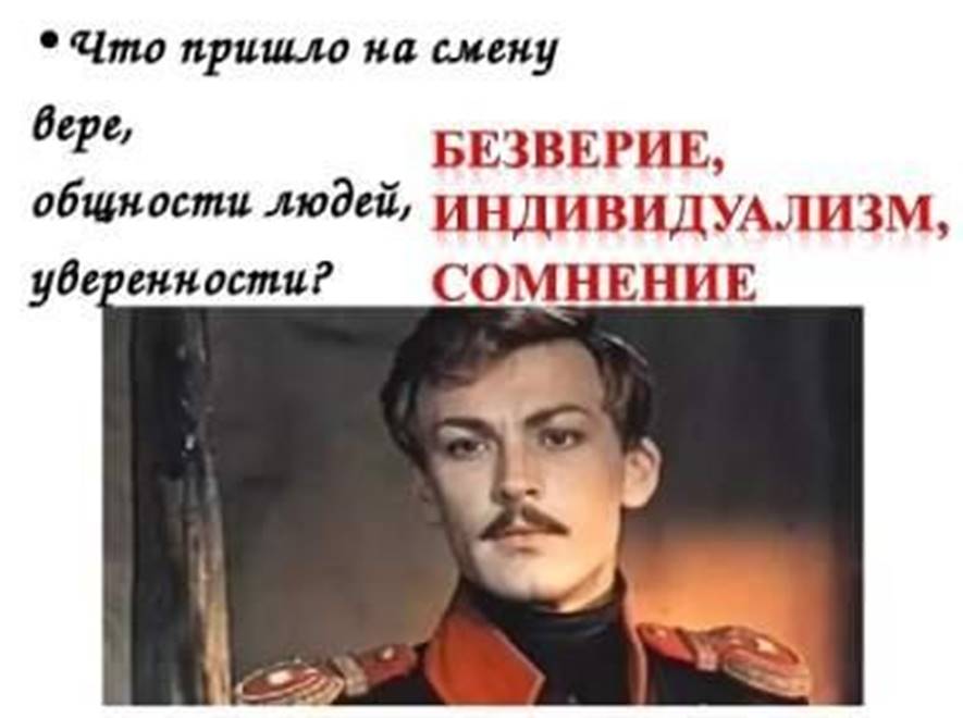Неверие, сомнение, отрицание стали особенностями сознания молодого поколения. Идеалы отцов они отвергли еще «с колыбели», а вместе с этим усомнились и в нравственных ценностях как таковых.