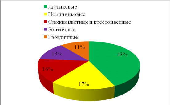 Рис.2. Диаграмма процентного соотношения преобладающих семейств ядовитых растений Нижегородской области
