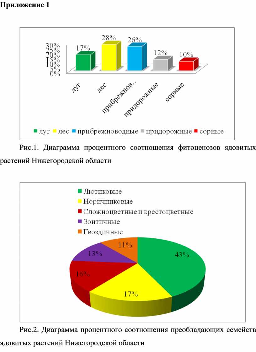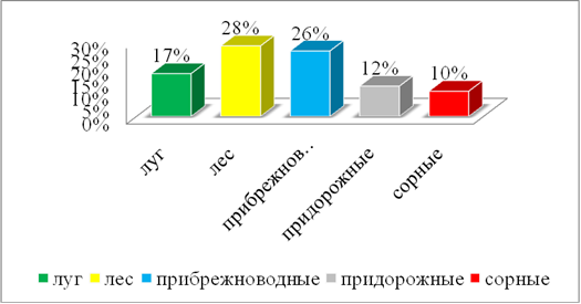 Рис.1. Диаграмма процентного соотношения фитоценозов ядовитых растений Нижегородской области