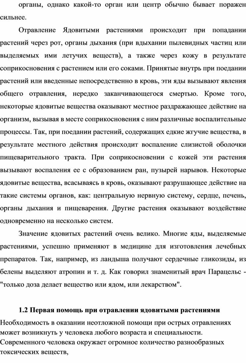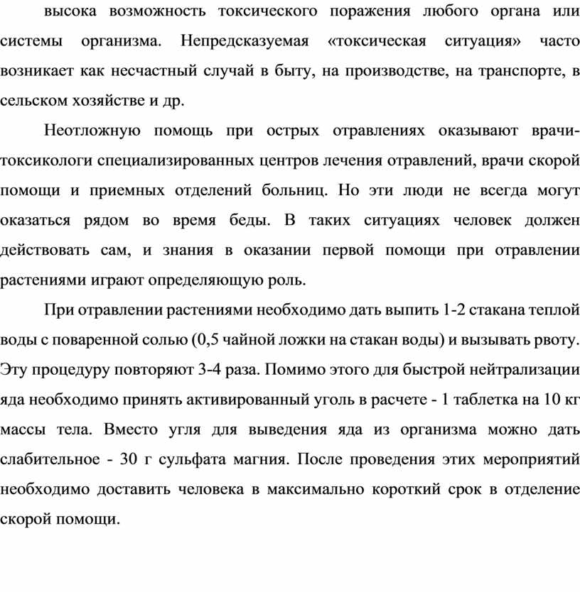 1.2 Первая помощь при отравлении ядовитыми растениями