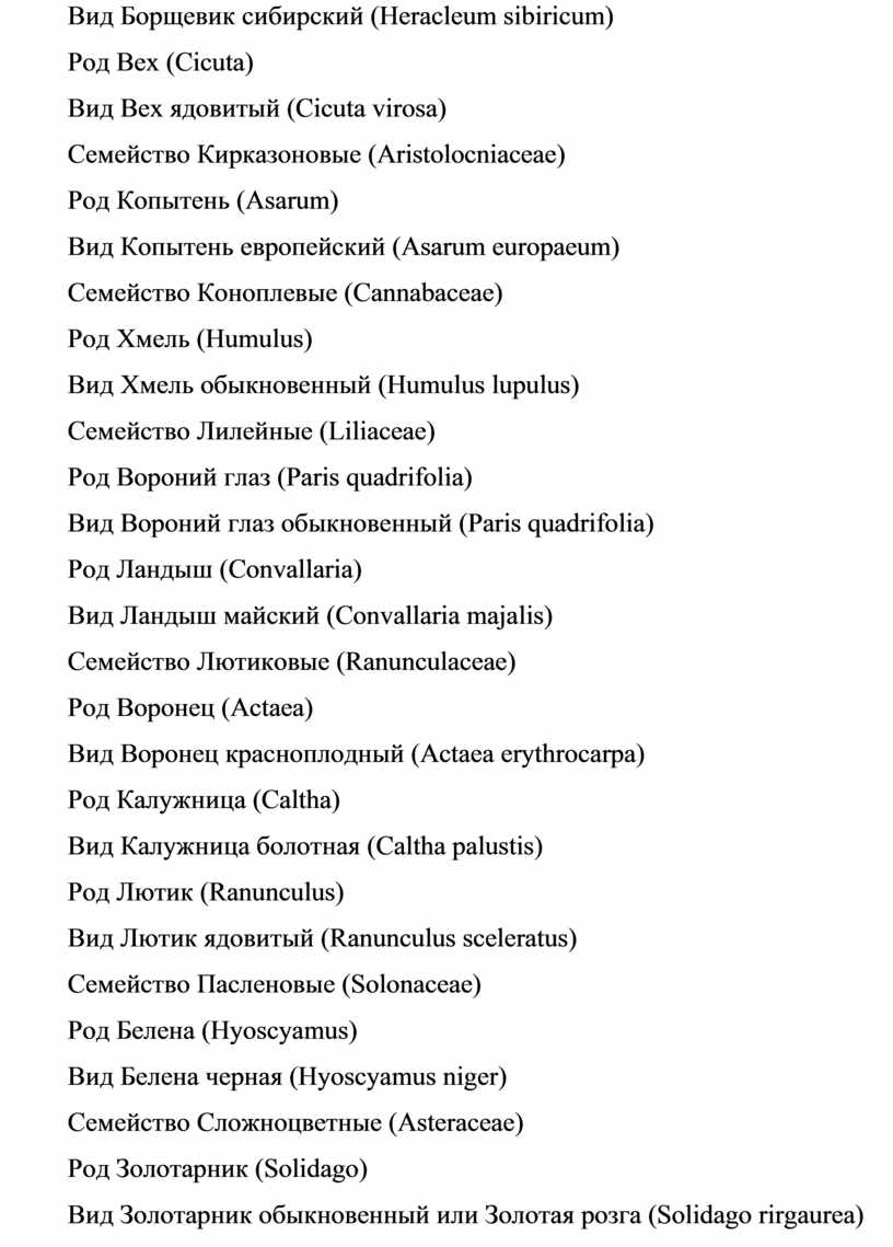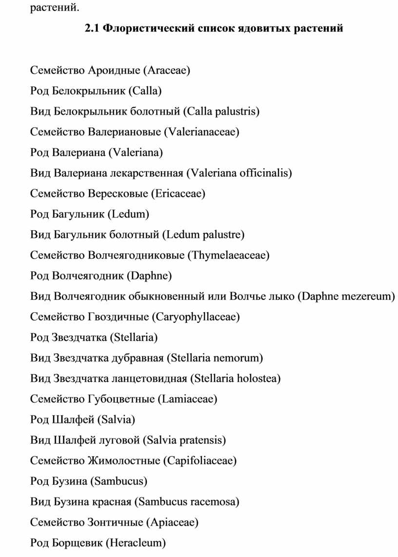 2.1 Флористический список ядовитых растений