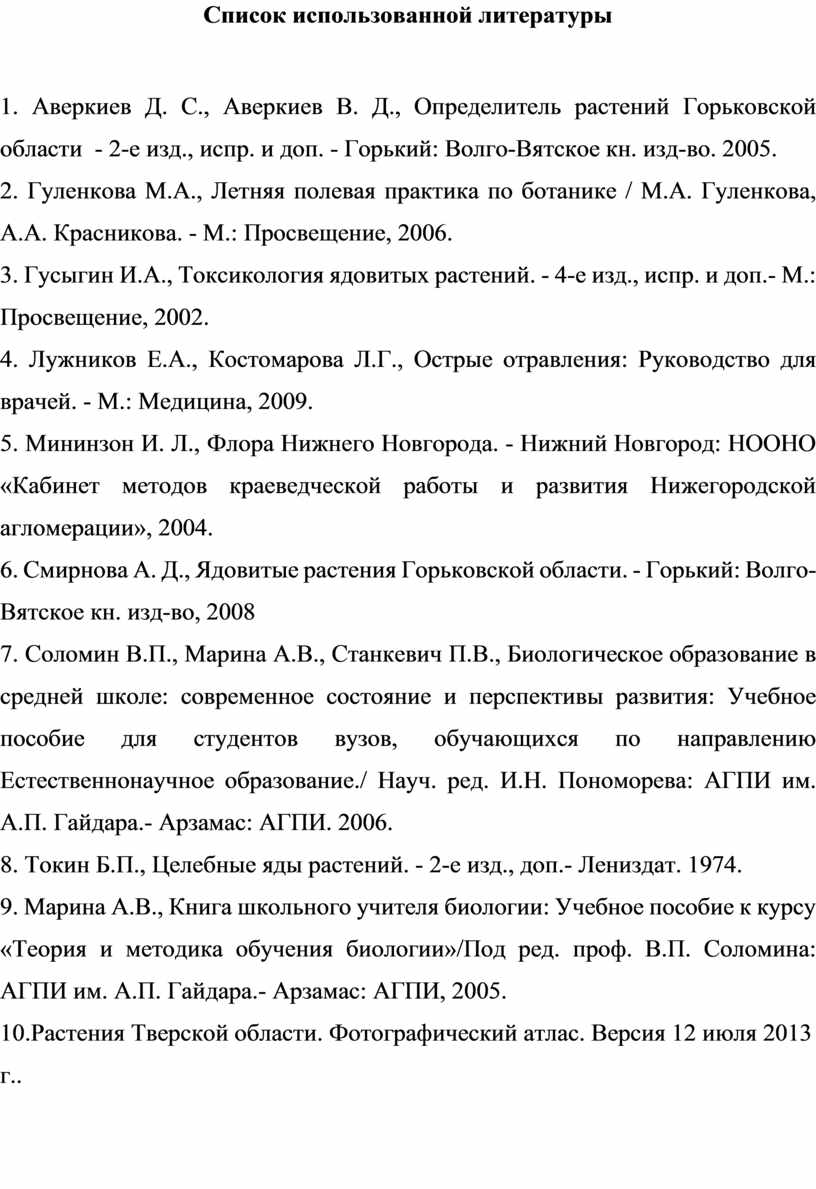 9. Марина А.В., Книга школьного учителя биологии: Учебное пособие к курсу «Теория и методика обучения биологии»/Под ред. проф. В.П. Соломина: АГПИ им. А.П. Гайдара.- Арзамас: АГПИ, 2005.