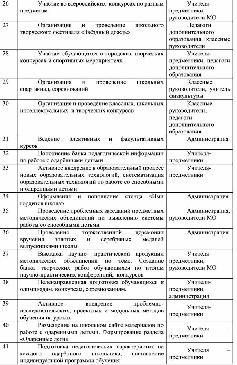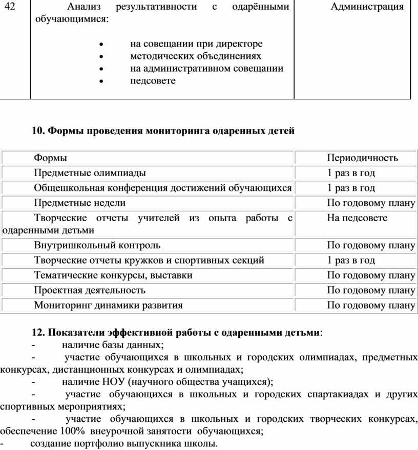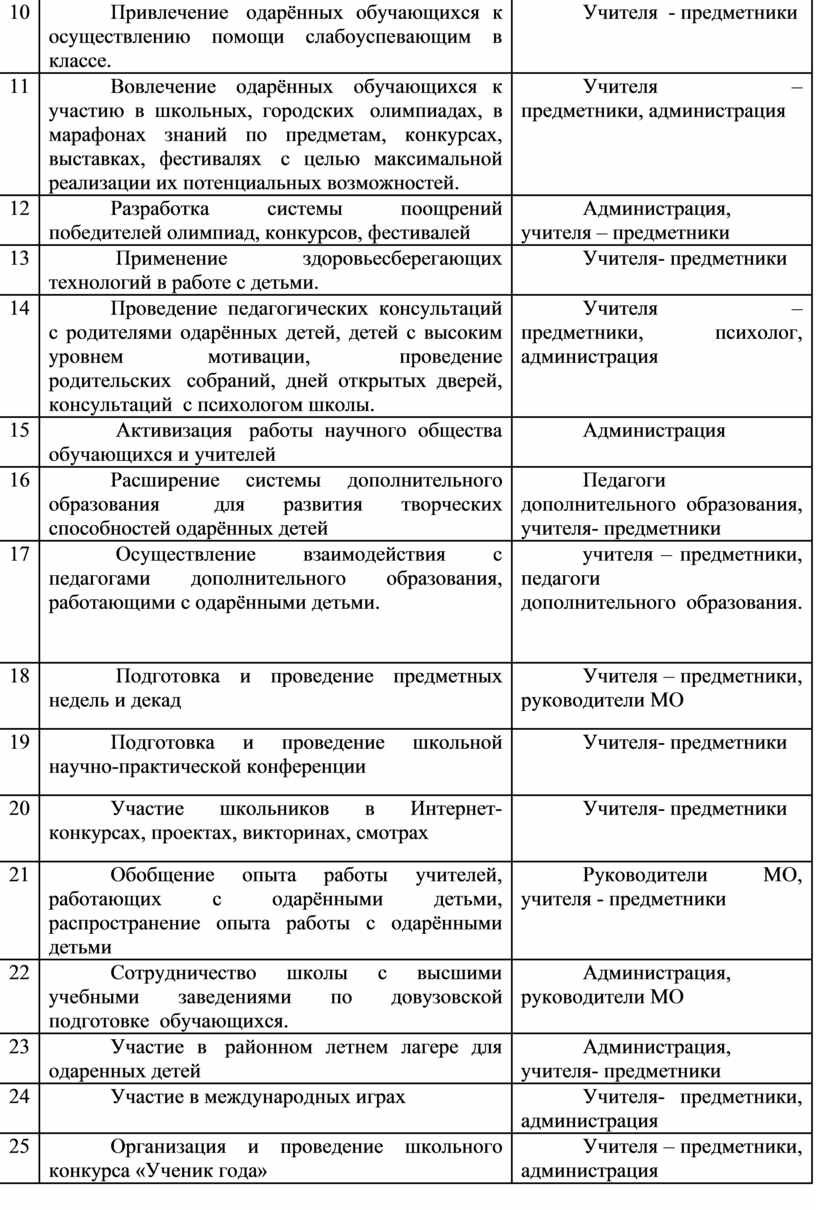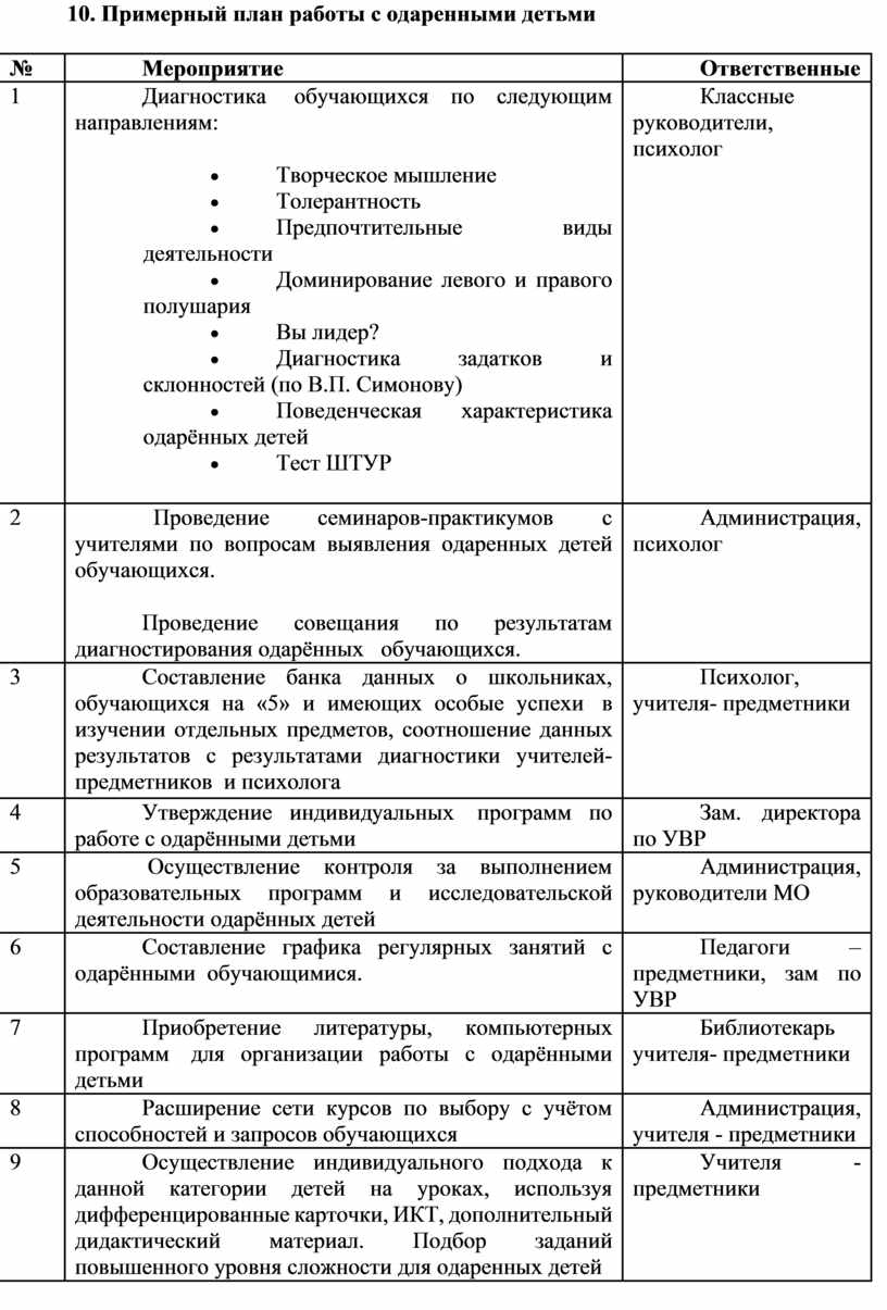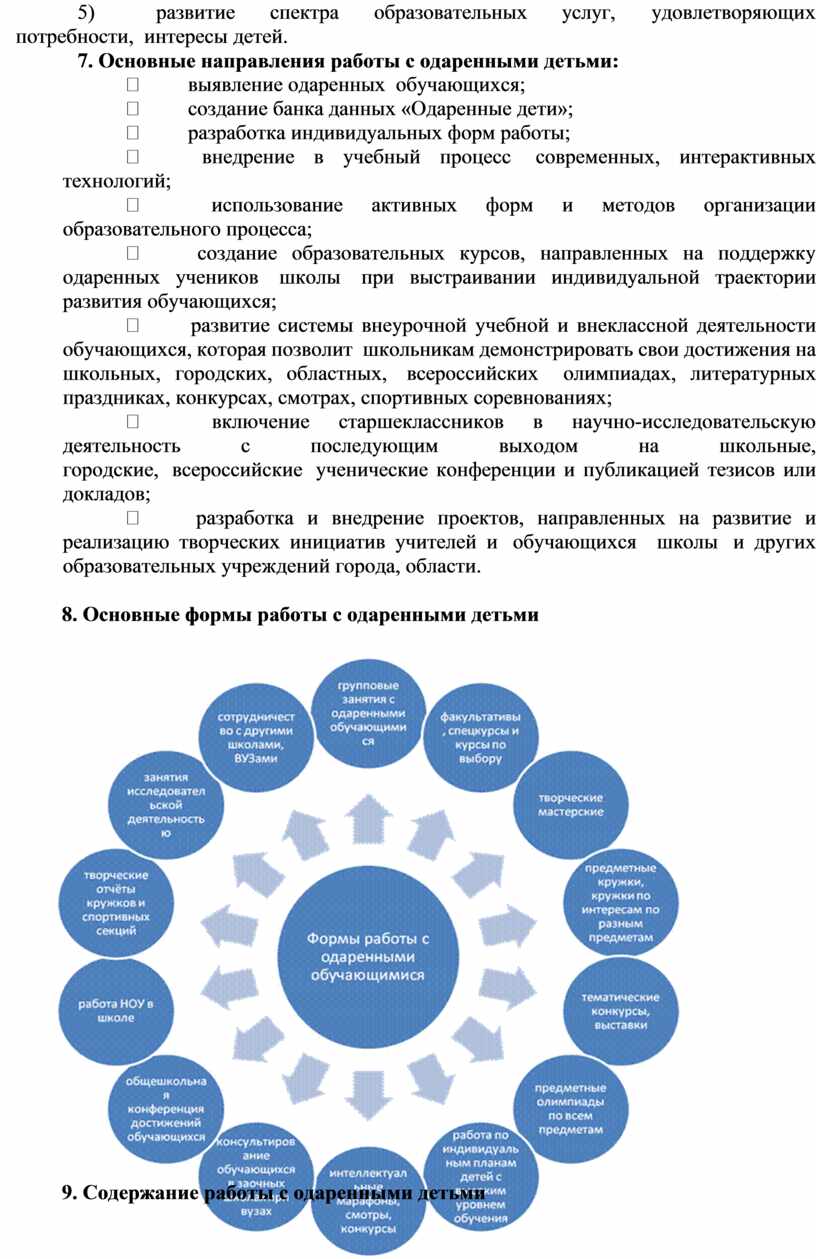 9. Содержание работы с одаренными детьми