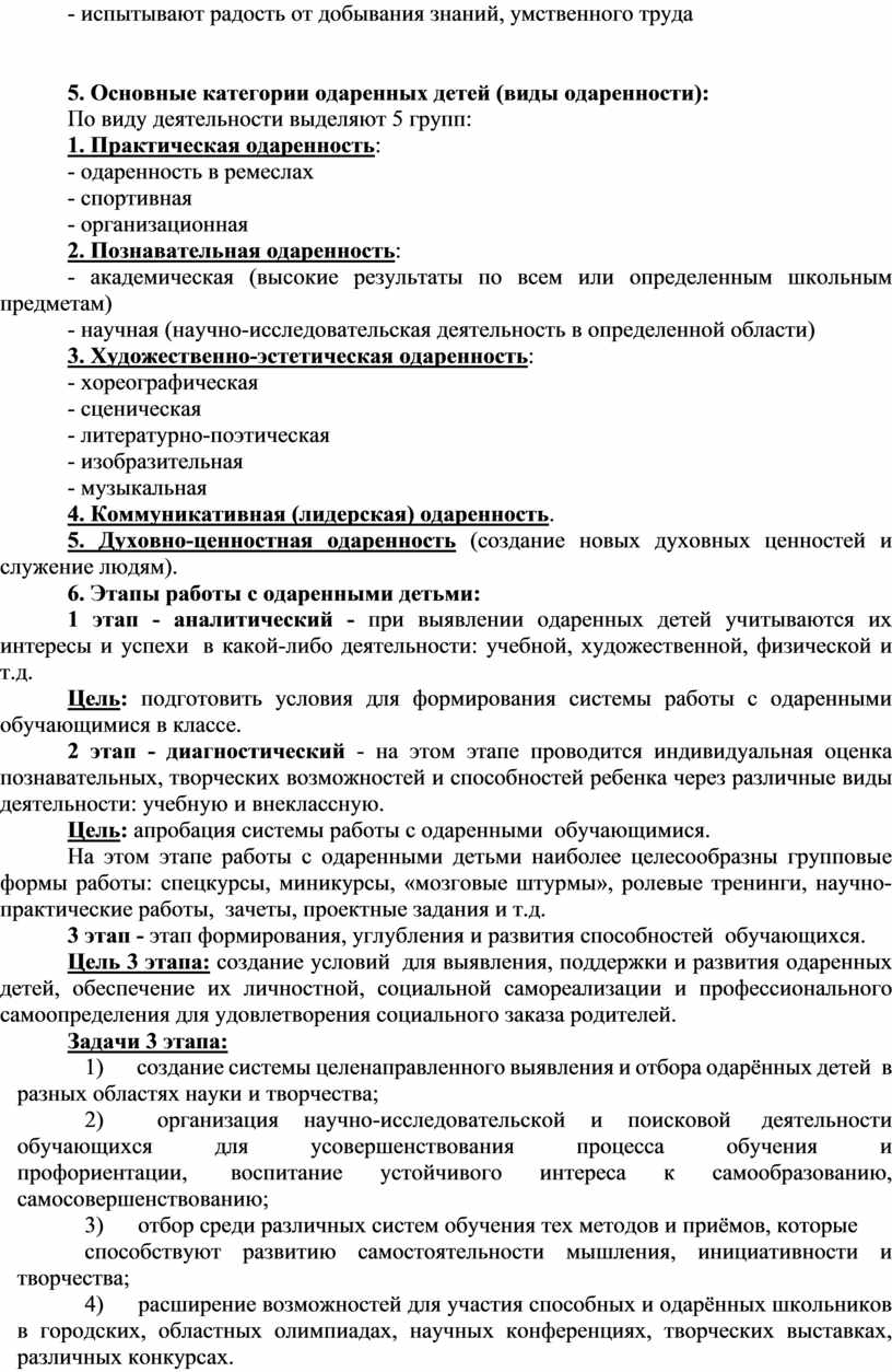 5. Основные категории одаренных детей (виды одаренности):