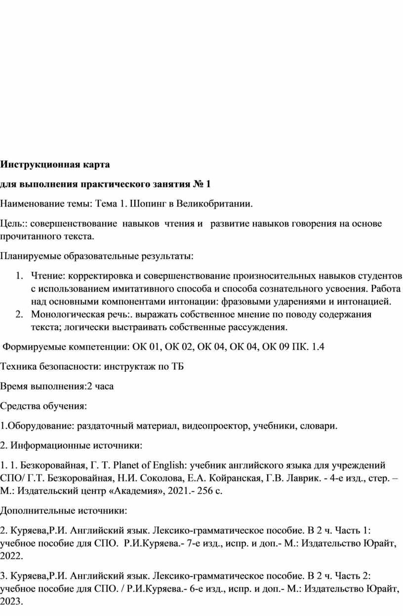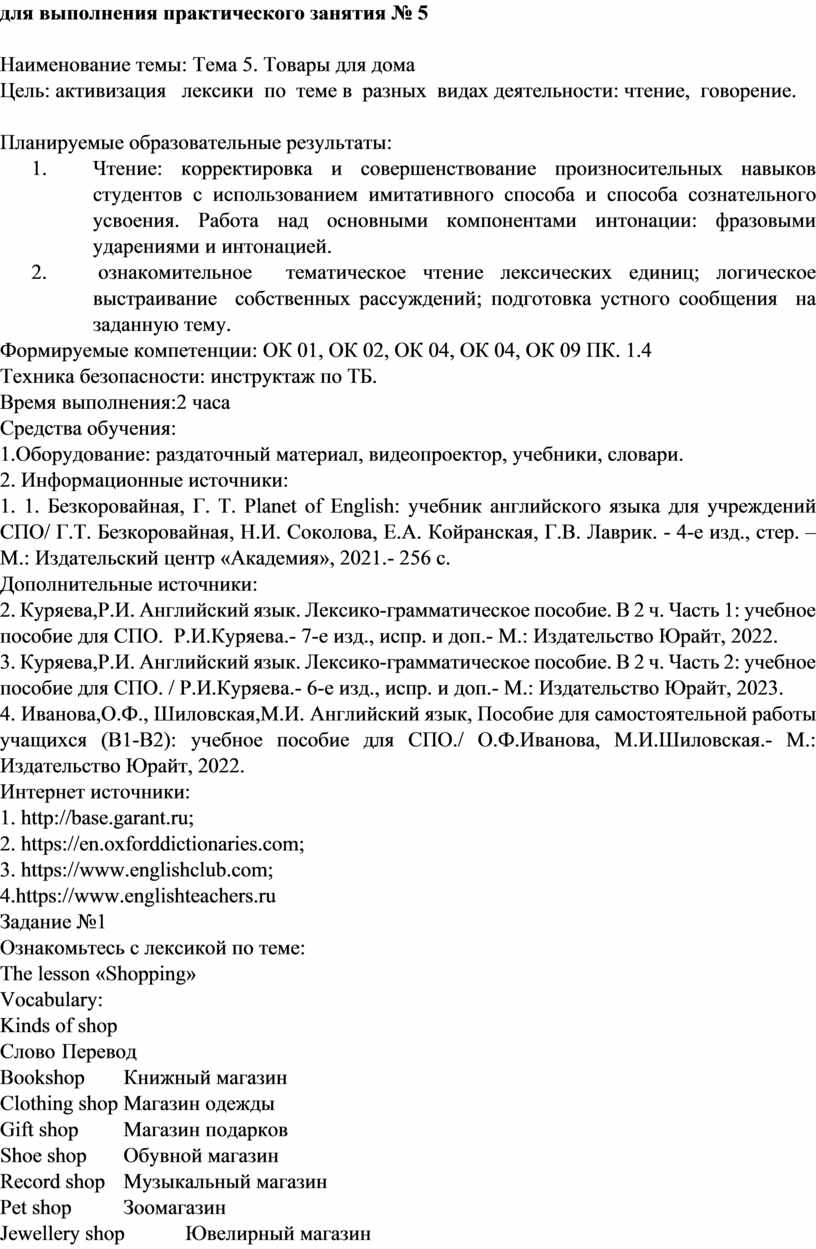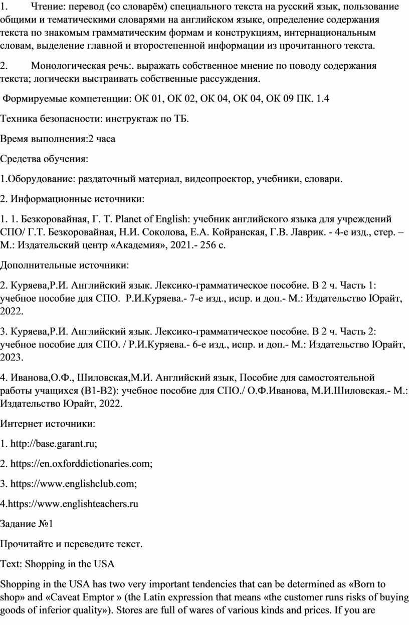 1. Безкоровайная, Г. Т. Planet of English: учебник английского языка для учреждений СПО/ Г.Т. Безкоровайная, Н.И. Соколова, Е.А. Койранская, Г.В. Лаврик. - 4-е изд., стер. –М.: Издательский центр «Академия», 2021.- 256 с.