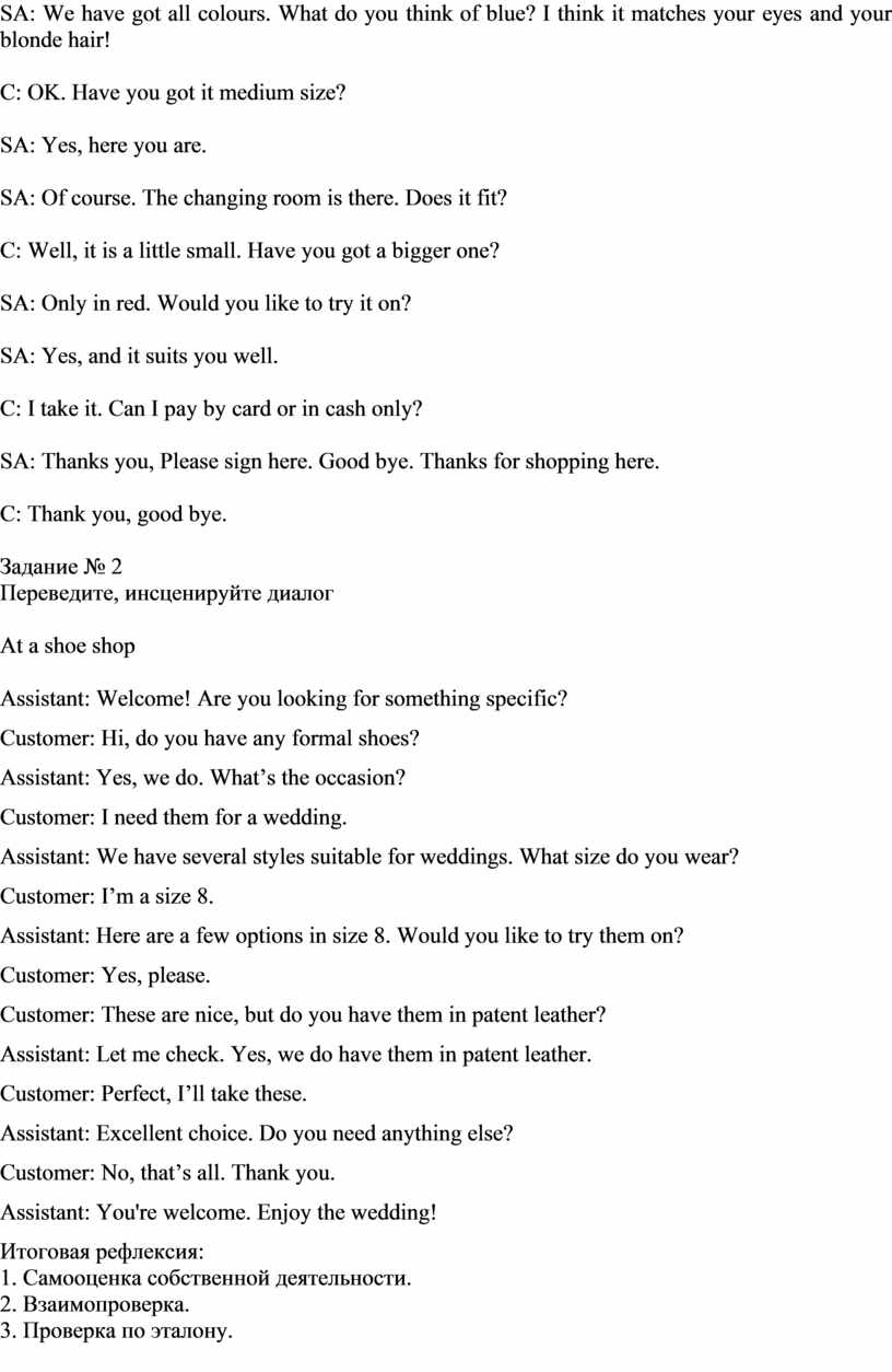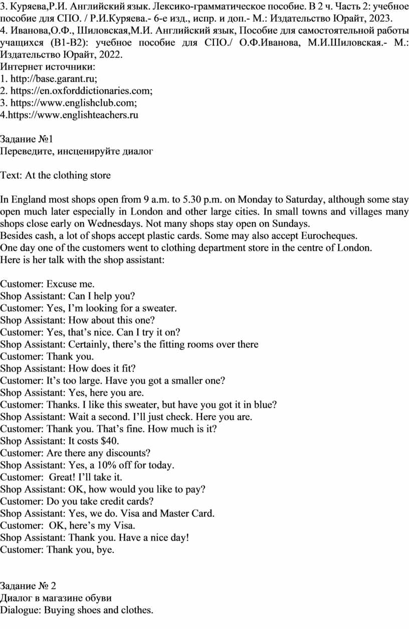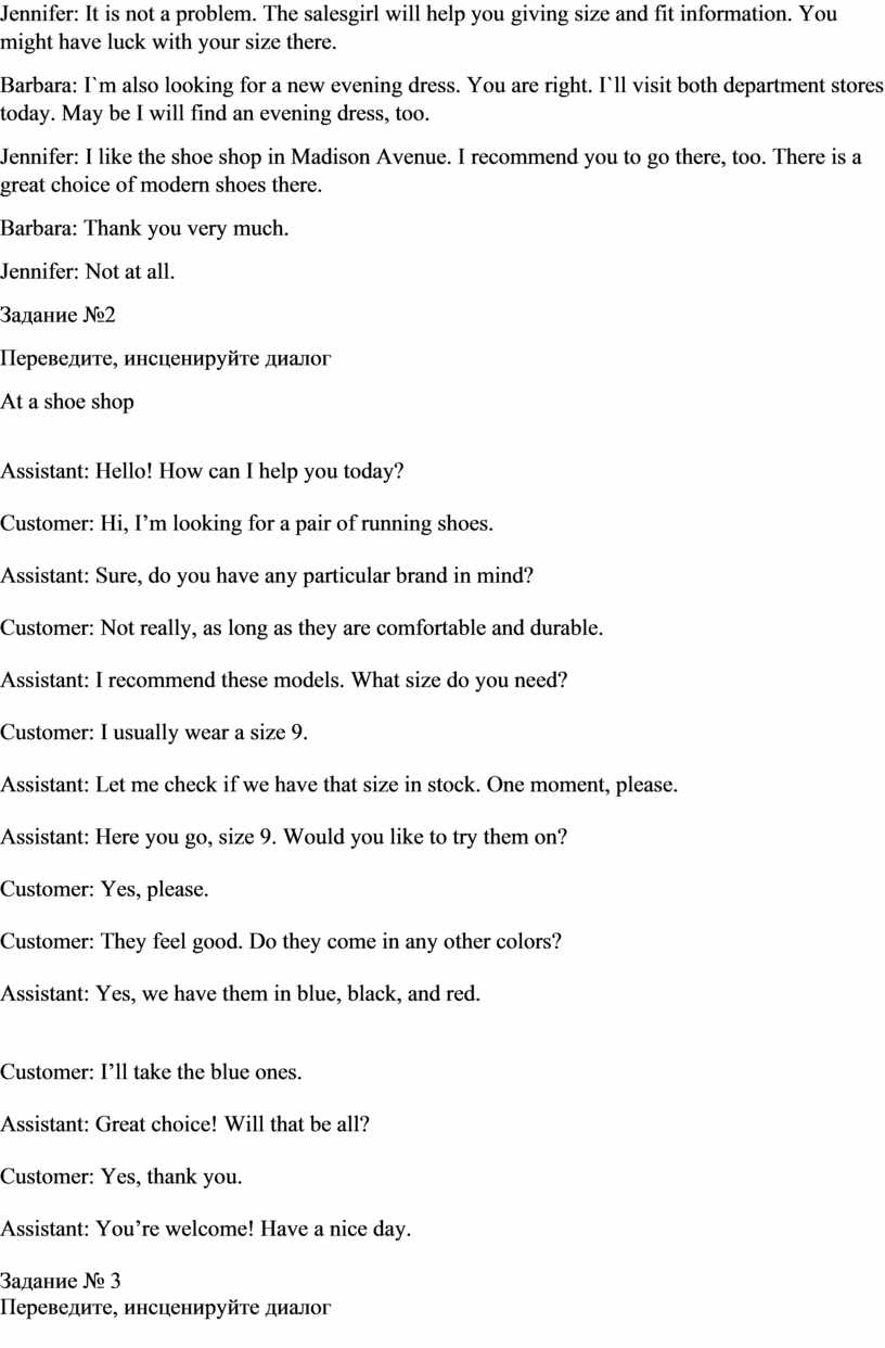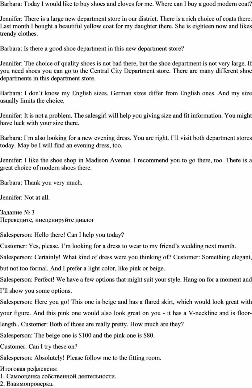 Покупка обуви и одежды |