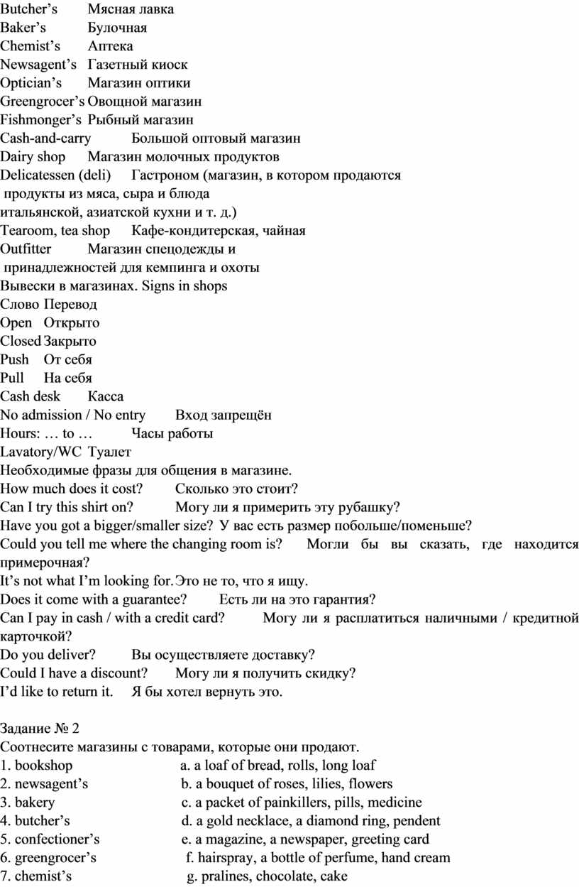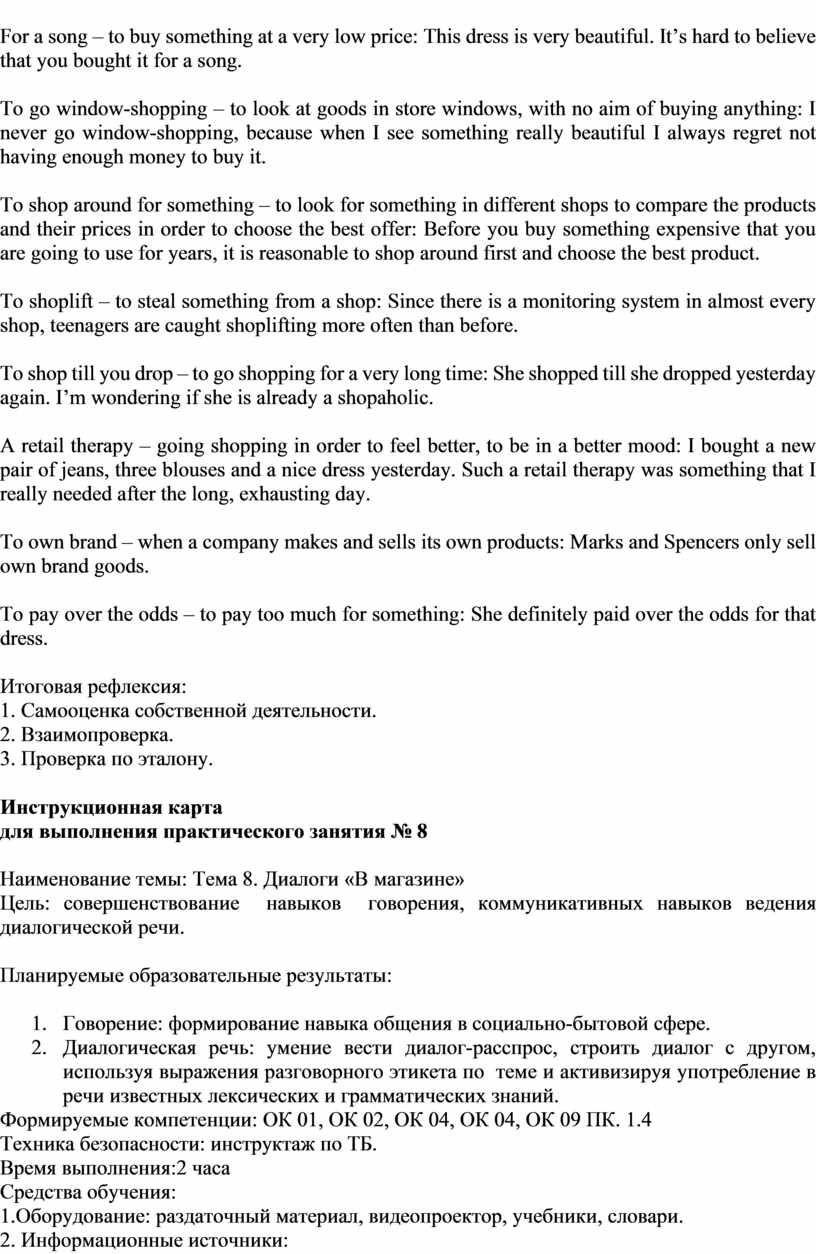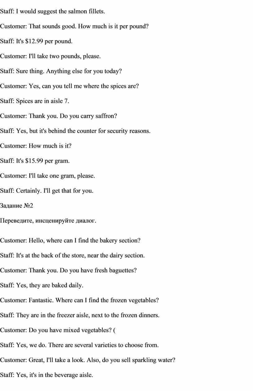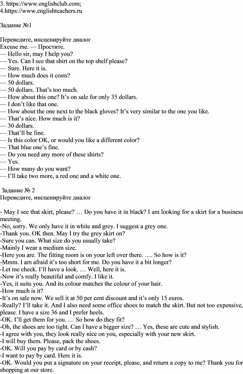 Диалоги «В магазине» |