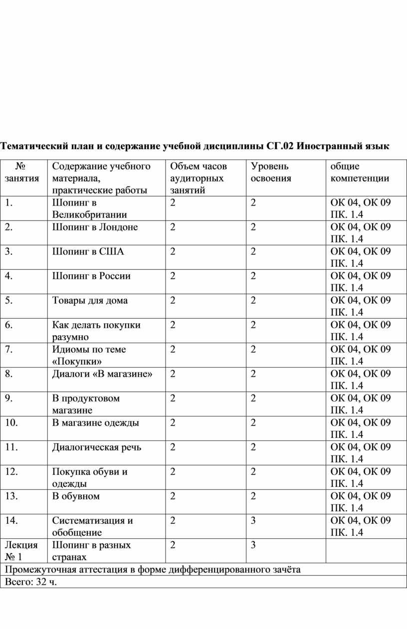 Тематический план и содержание учебной дисциплины СГ.02 Иностранный язык