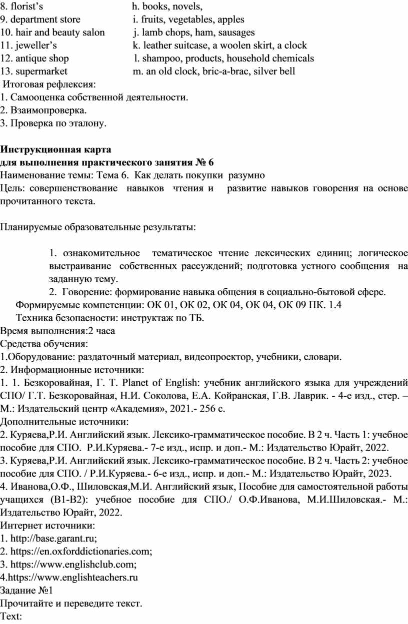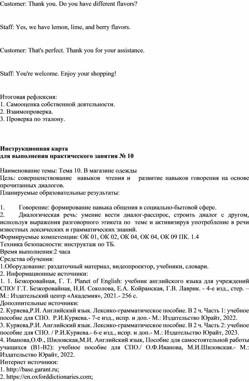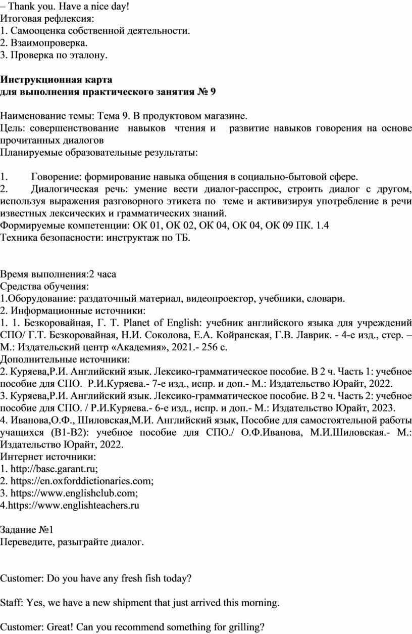 ОК 09 Пользоваться профессиональной документацией на государственном и иностранном языках