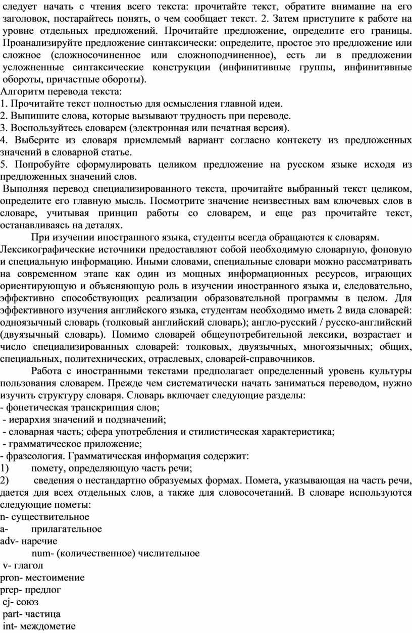 Методические указания при переводе текстов и работе со словарем.