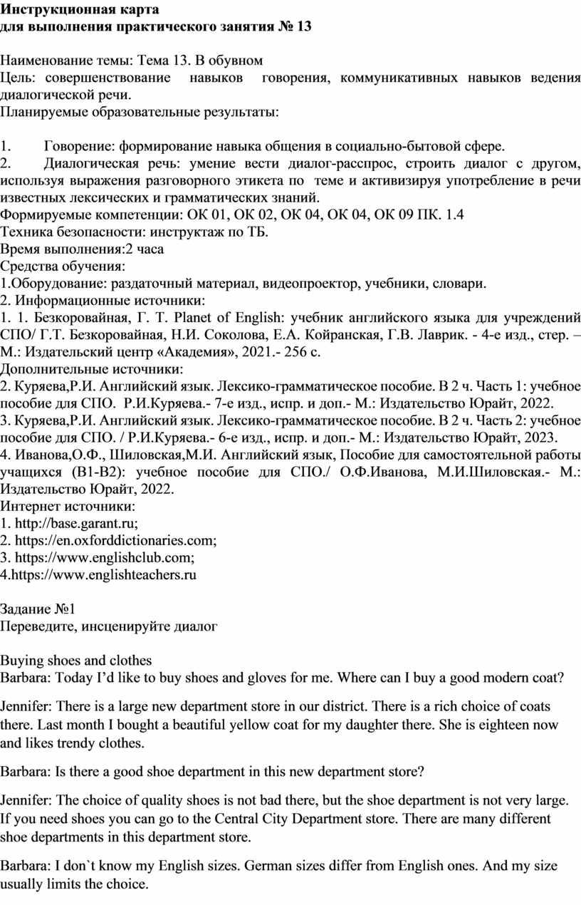 Целью практических работ по дисциплине СГ.02 «Иностранный язык в профессиональной деятельности» является проведение практических занятий и овладение фундаментальными знаниями, профессиональными умениями и навыками по профилю изучаемой дисциплины, закрепление и систематизация знаний, формирование умений и навыков и овладение опытом творческой, исследовательской деятельности.