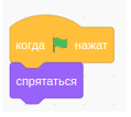 Давайте создадим проект, и на его примере разберем как они работают. Сюжет анимации такой: На землю прилетает ракета, в которой сидит Gobo, но мы его не видим. Как только ракета приземлилась на землю, из нее выходит Gobo . Сначала надо создать скрипт для ракеты – спрятаться и аналогичный скрипт для Gobo. Воспользуемся командой "спрятаться", поскольку оба спрайта в начале скрипта будут не видимы. Не забудьте выбрать фон – любого ландшафта земли.
