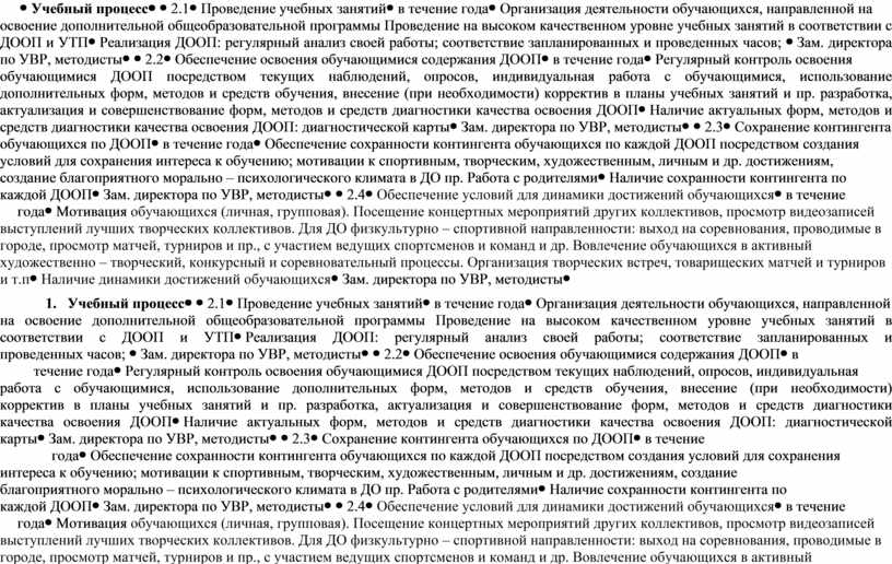Разработка УТП, планов работы на полугодие, на учебный год, репертуарный план, план соревнований, план подготовки к аттестации, планирование методической работы и пр. |