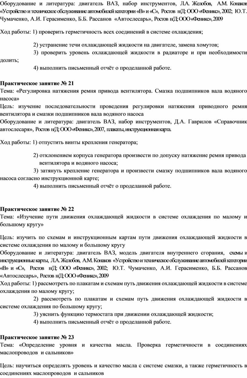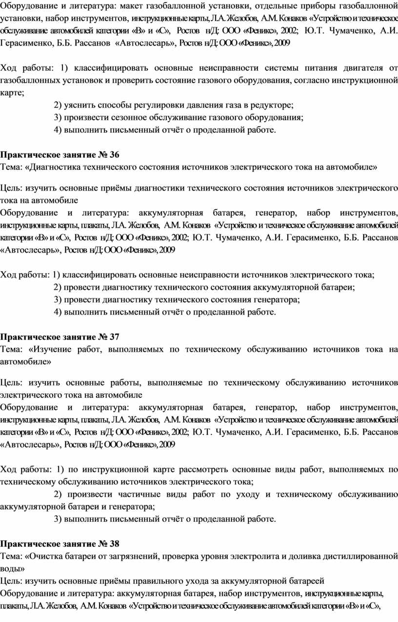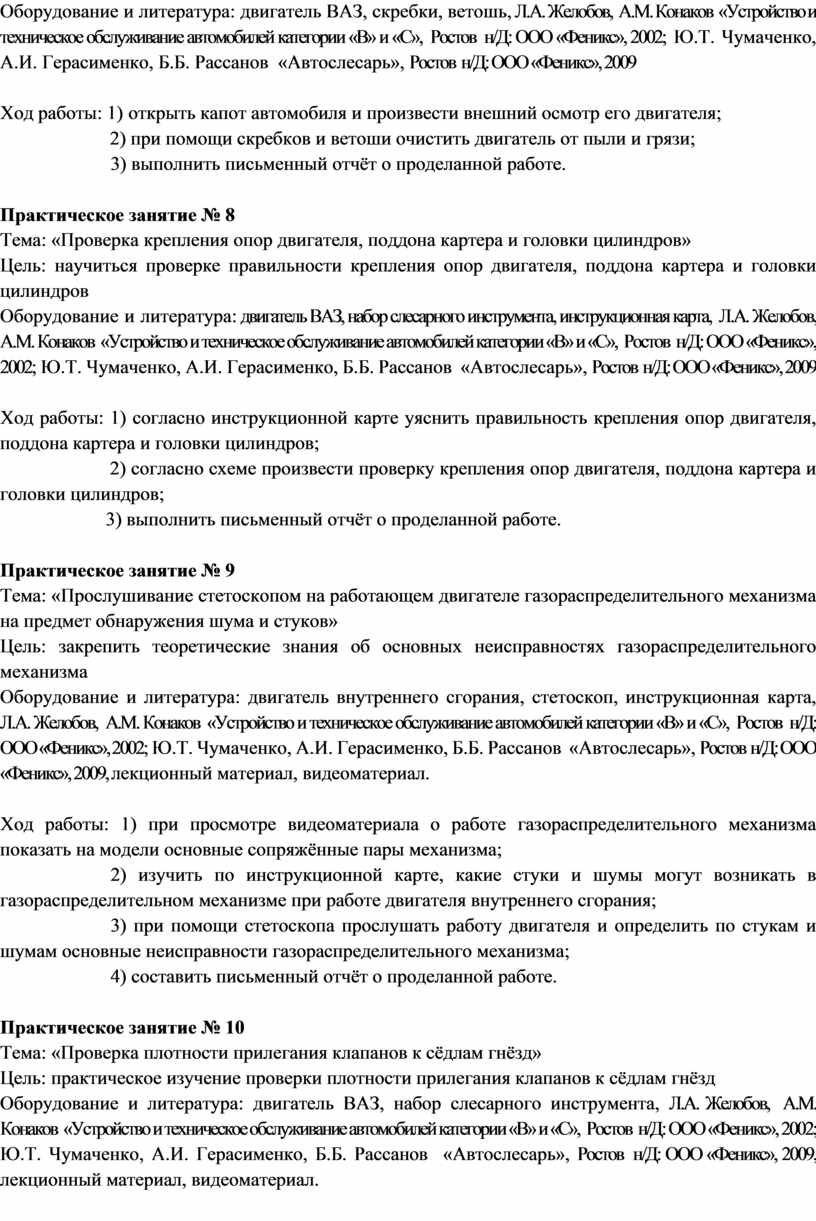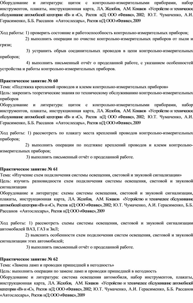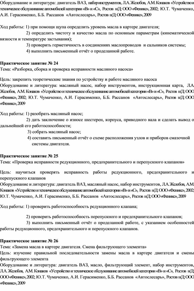 2. Жолобов Л.А., Конаков А.М. Устройство и техническое обслуживание автомобилей категорий «В» и «С» на примере ВАЗ-2110, ЗиЛ 5301 «Бычок». Серия «Библиотека автомобилиста». – Ростов н/Д : Феникс, 2002 г.