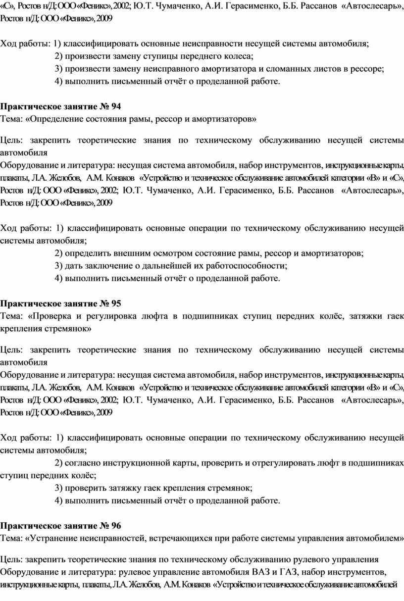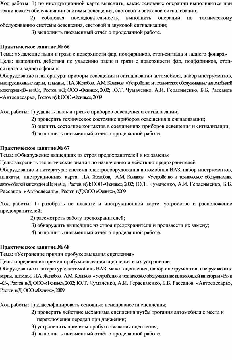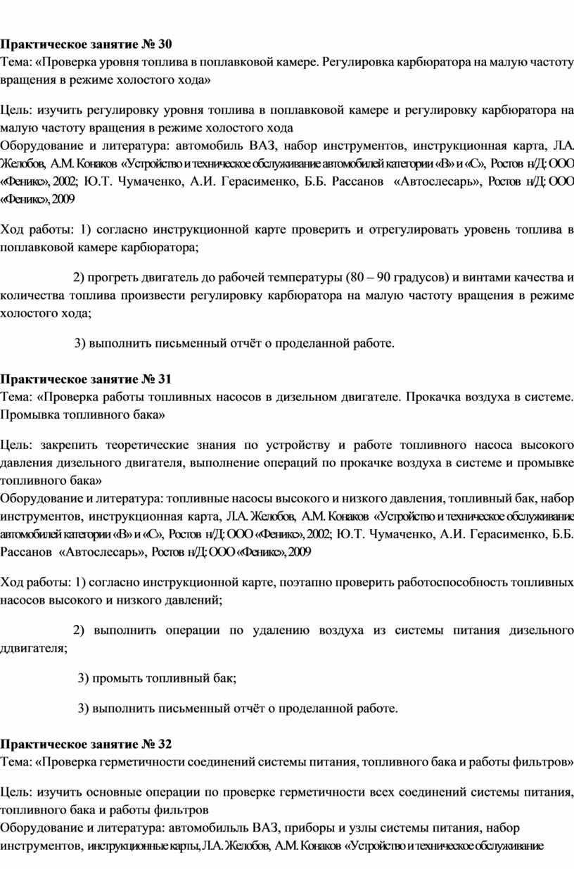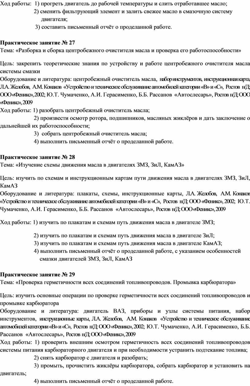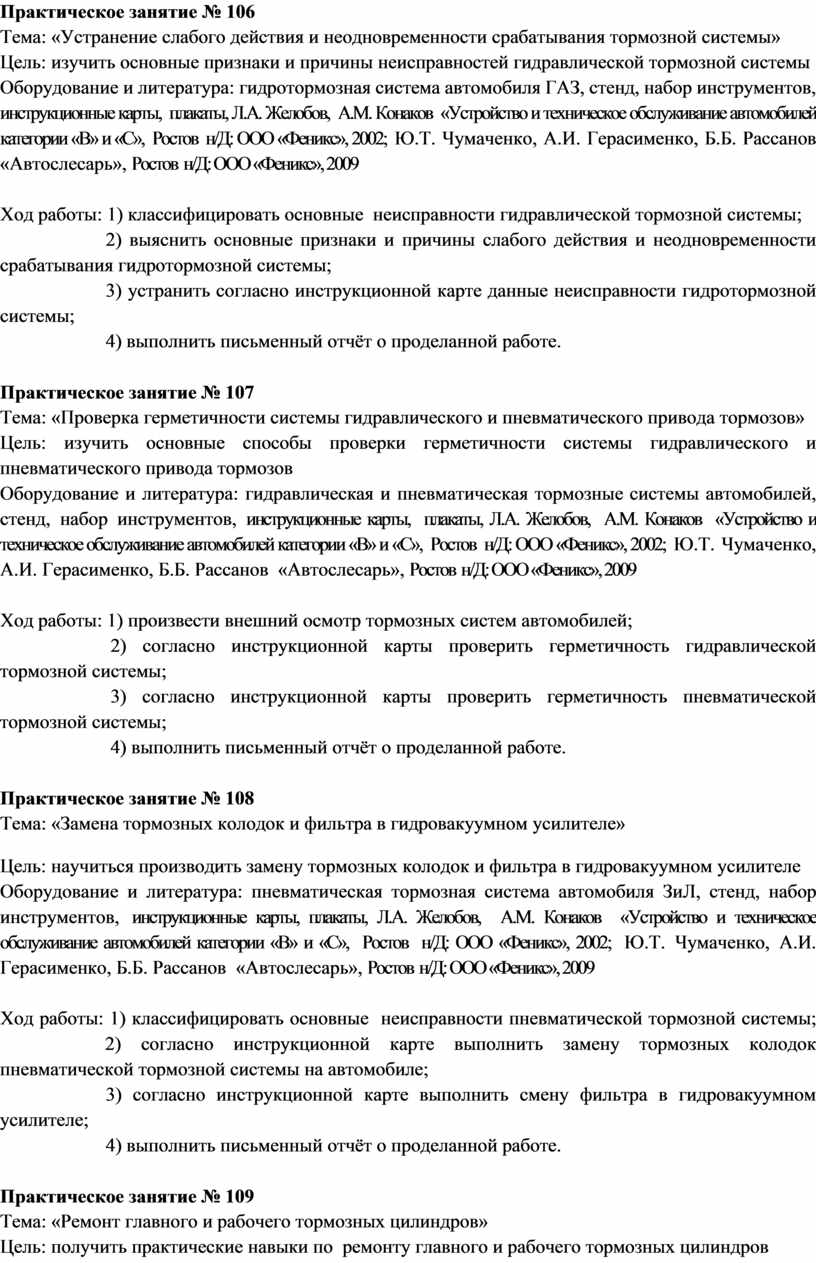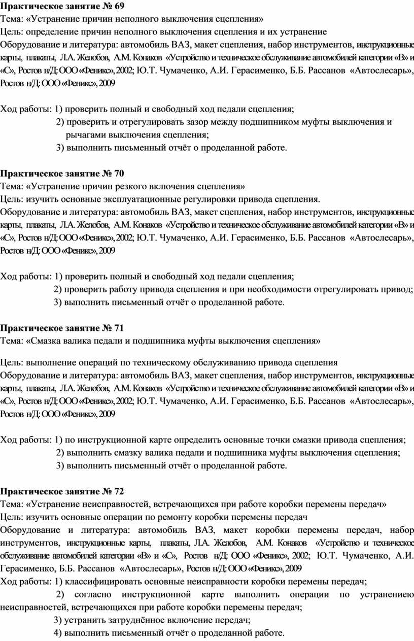 2. Жолобов Л.А., Конаков А.М. Устройство и техническое обслуживание автомобилей категорий «В» и «С» на примере ВАЗ-2110, ЗиЛ 5301 «Бычок». Серия «Библиотека автомобилиста». – Ростов н/Д : Феникс, 2002 г.