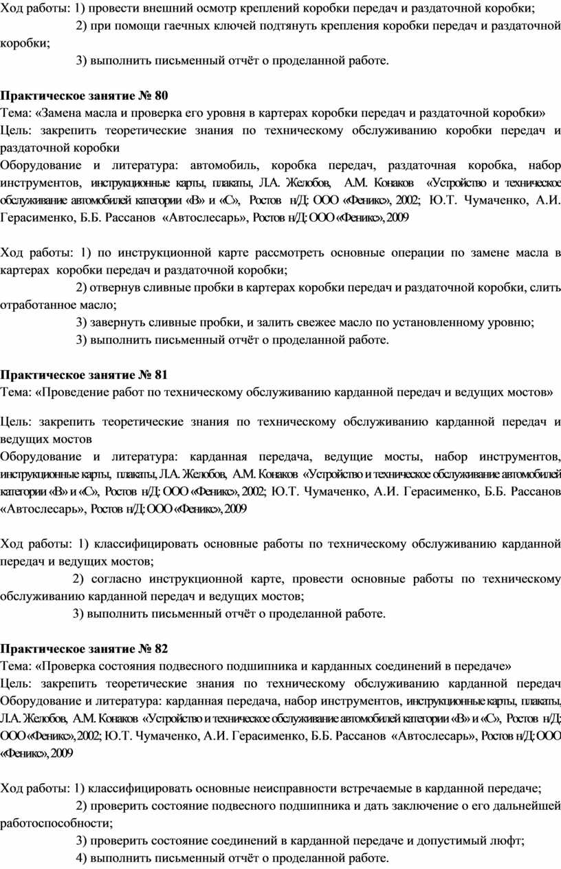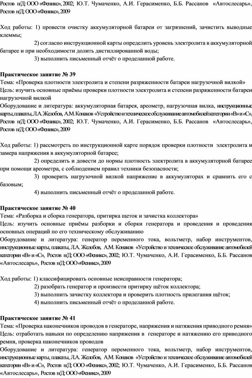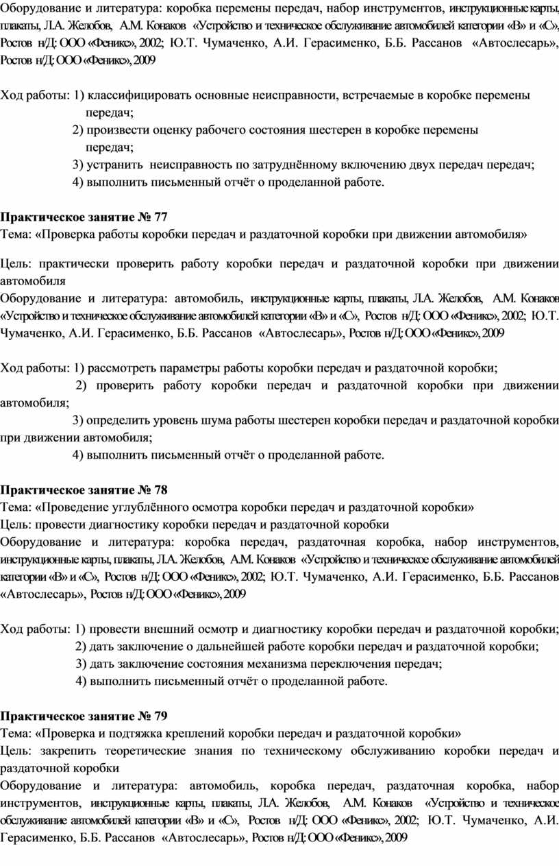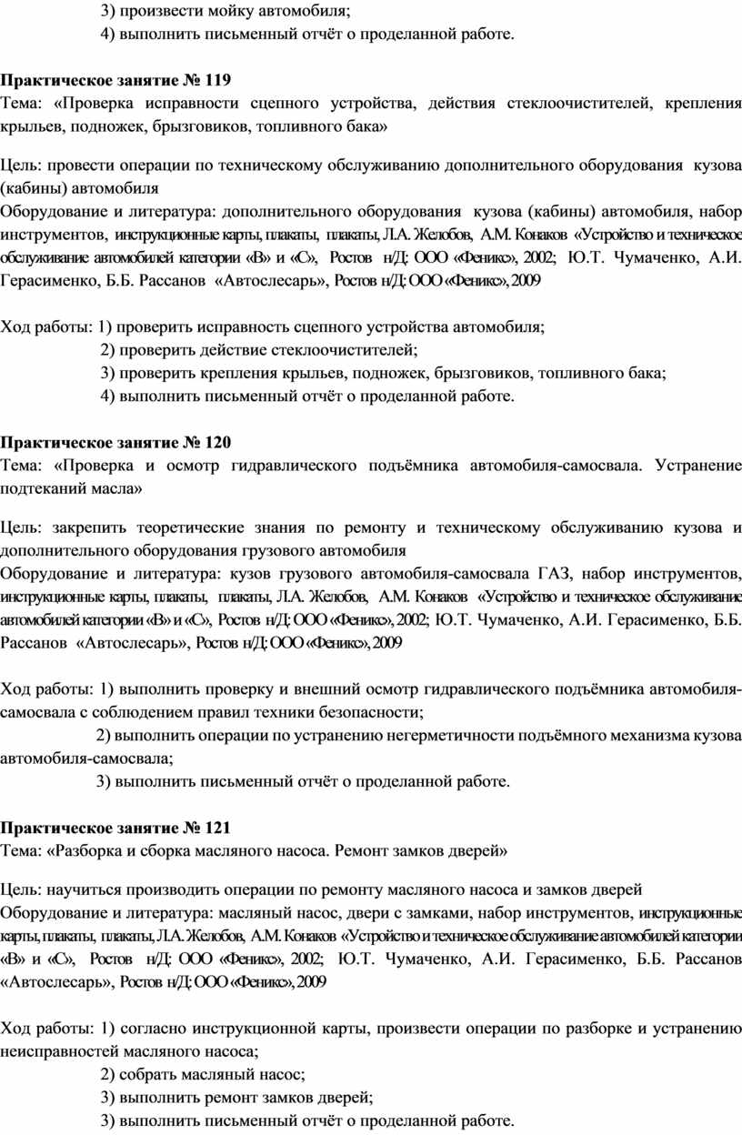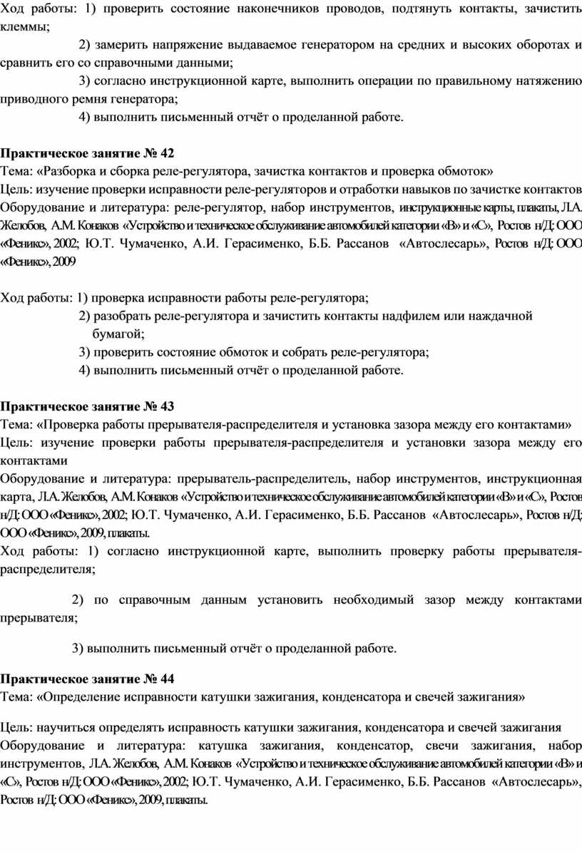 2. Жолобов Л.А., Конаков А.М. Устройство и техническое обслуживание автомобилей категорий «В» и «С» на примере ВАЗ-2110, ЗиЛ 5301 «Бычок». Серия «Библиотека автомобилиста». – Ростов н/Д : Феникс, 2002 г.