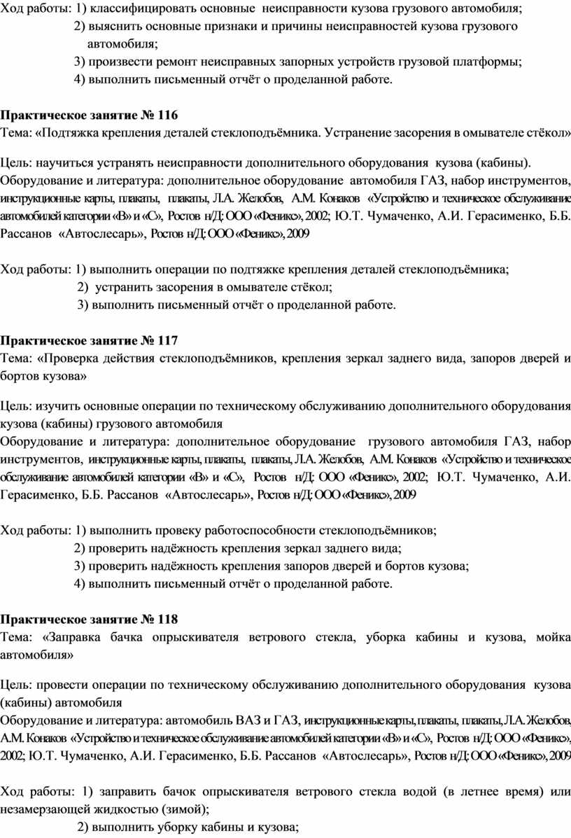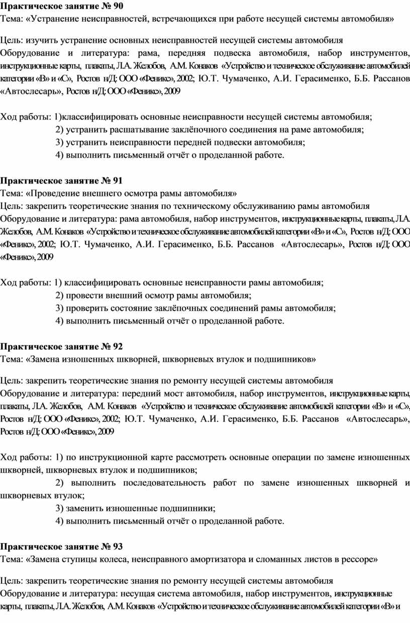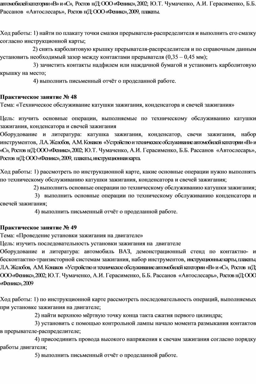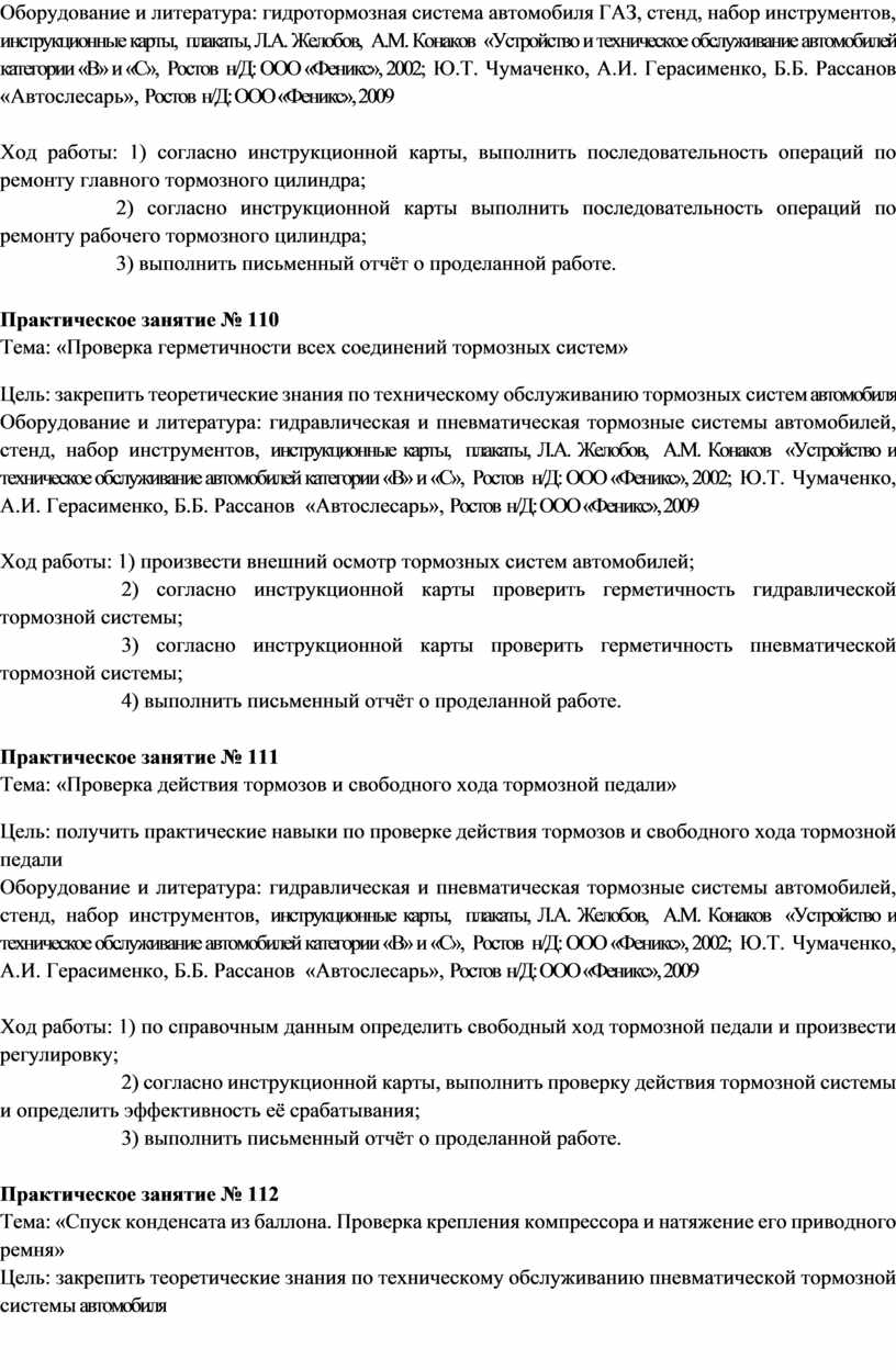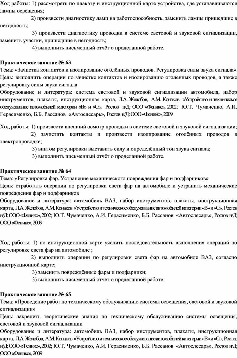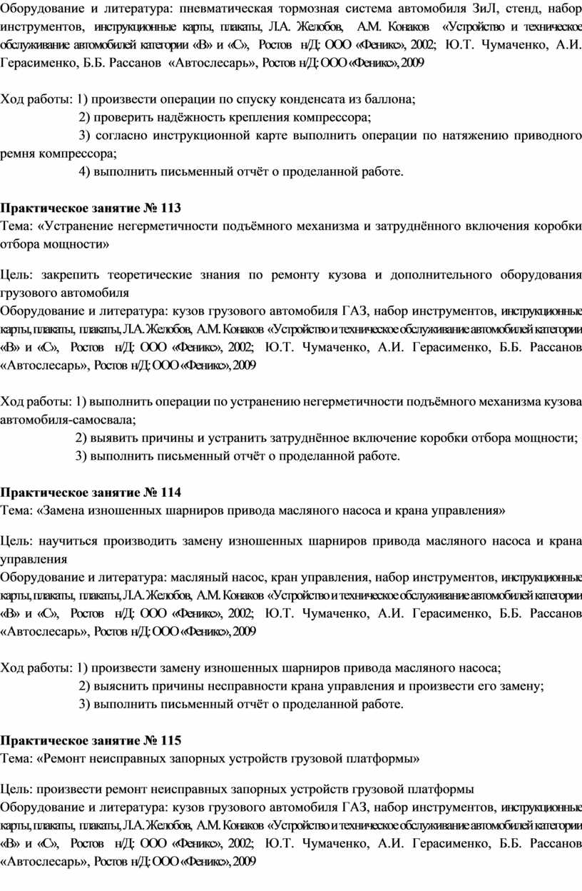 2. Жолобов Л.А., Конаков А.М. Устройство и техническое обслуживание автомобилей категорий «В» и «С» на примере ВАЗ-2110, ЗиЛ 5301 «Бычок». Серия «Библиотека автомобилиста». – Ростов н/Д : Феникс, 2002 г.