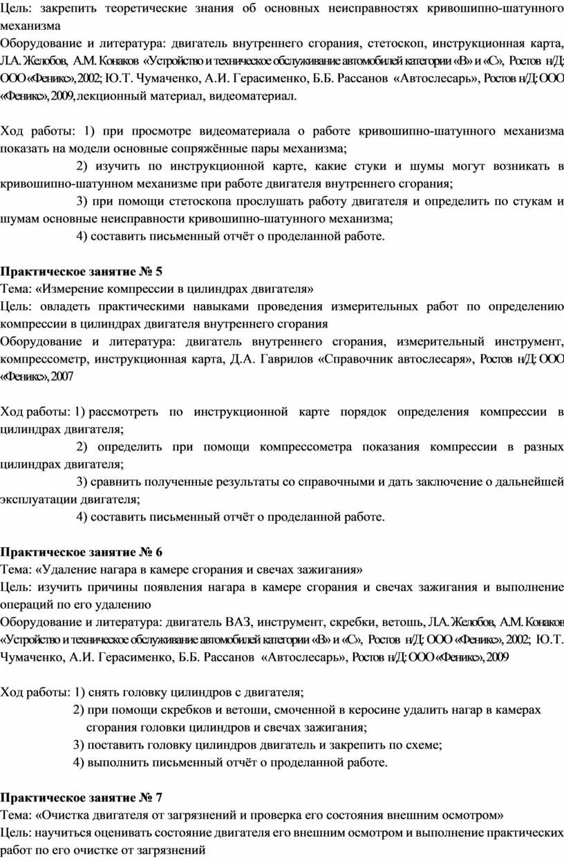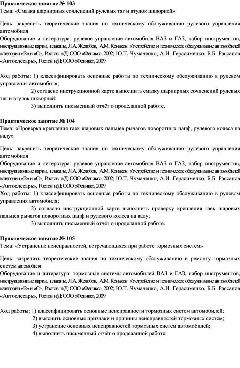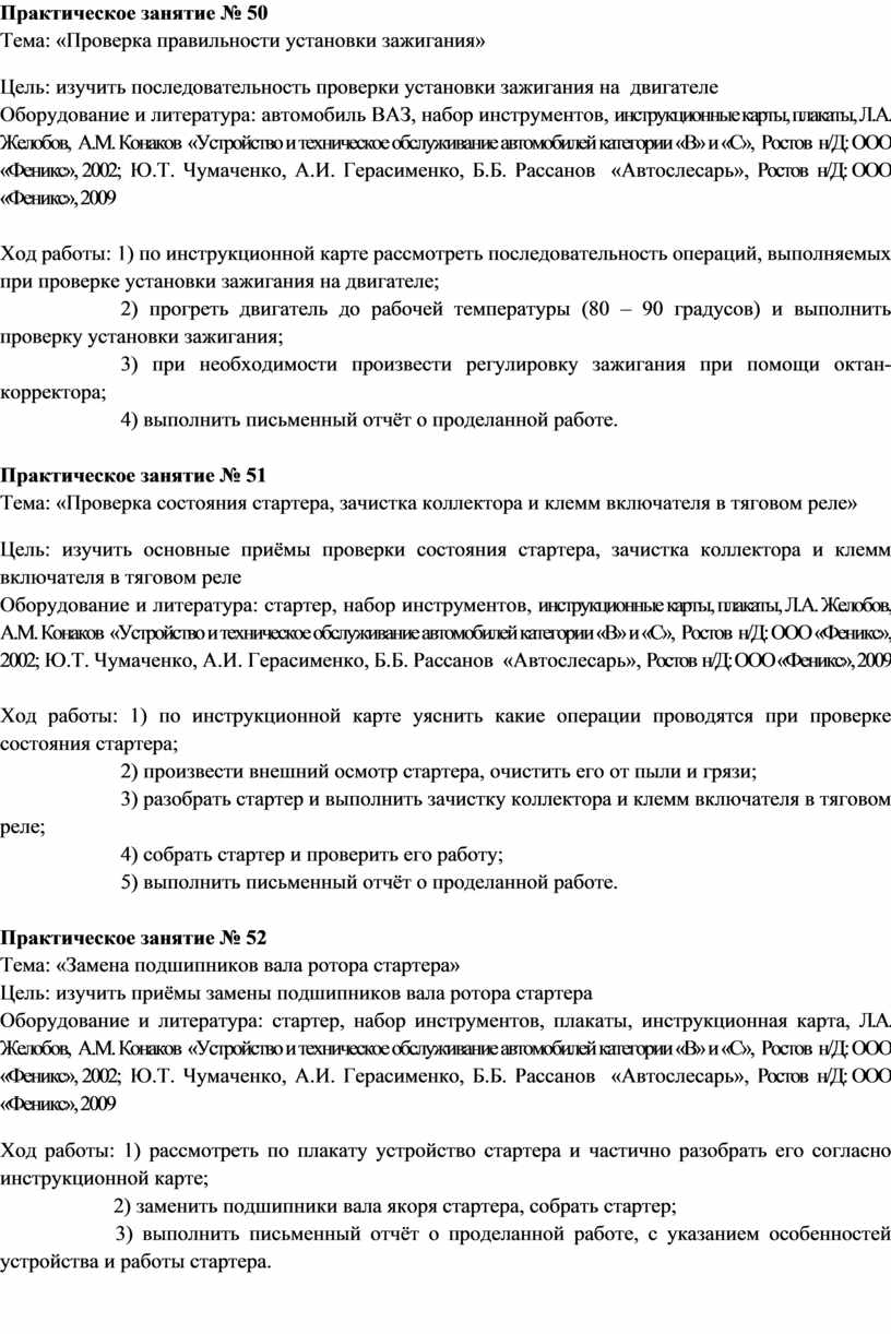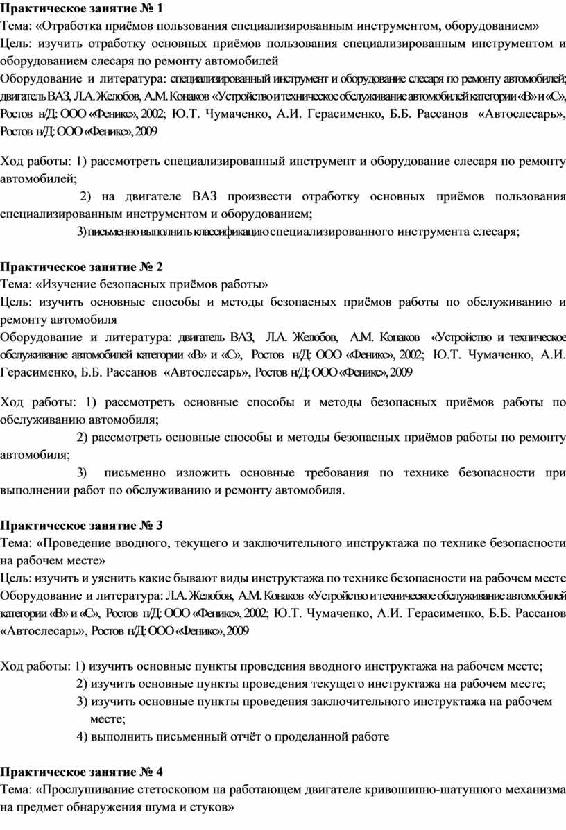 Учебно-методические указания предназначены для обучающихся профессии «Слесарь по ремонту автомобилей». В них изложена примерная тематика практических работ, методические рекомендации для выполнения работ, задания, тесты и контрольные вопросы по вариантам.