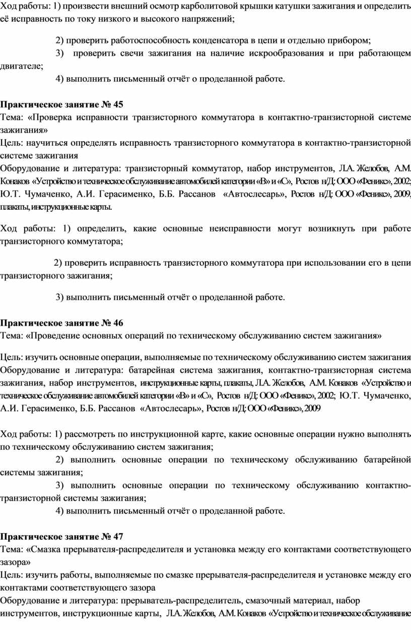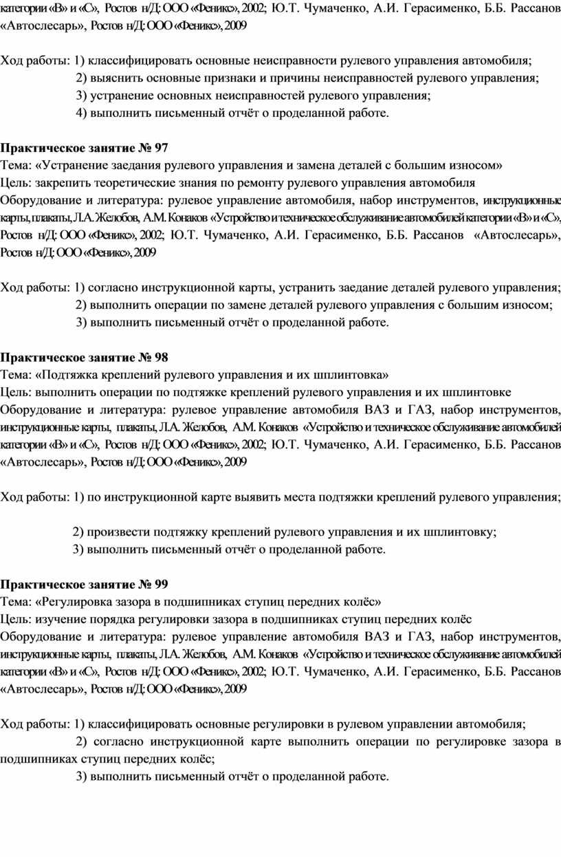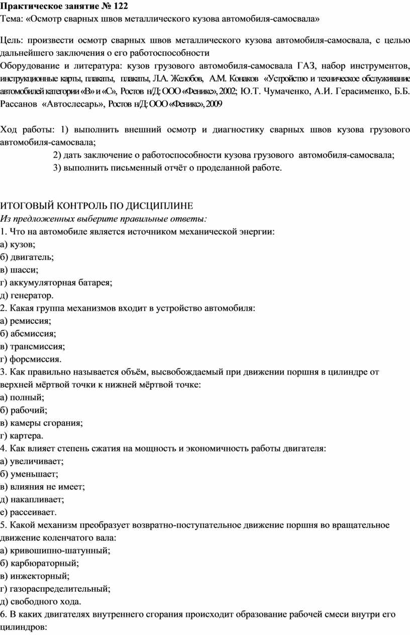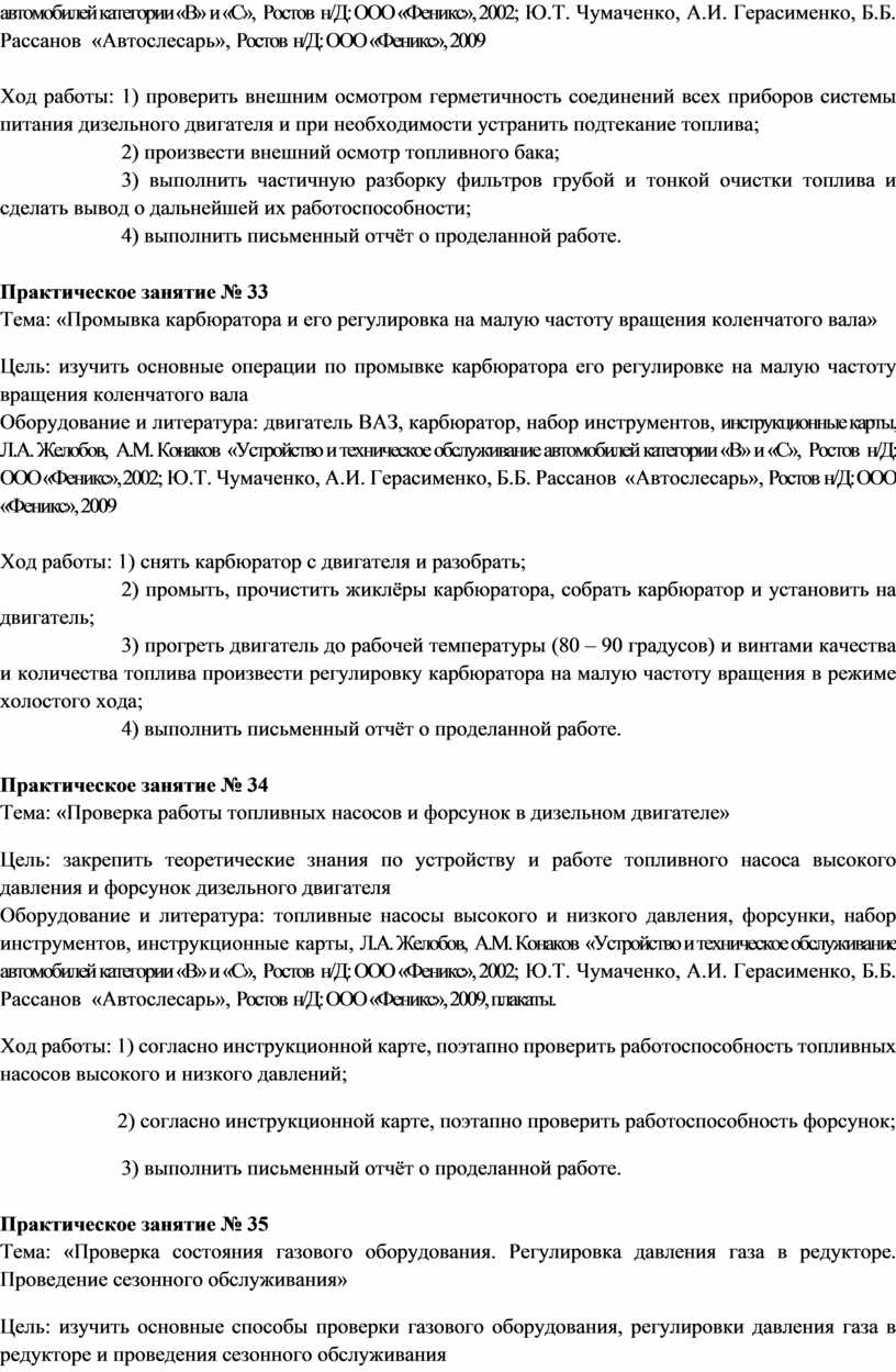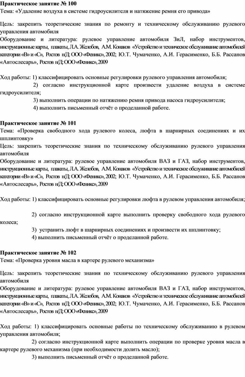 Учебно-методические указания предназначены для обучающихся профессии «Слесарь по ремонту автомобилей». В них изложена примерная тематика практических работ, методические рекомендации для выполнения работ, задания, тесты и контрольные вопросы по вариантам.