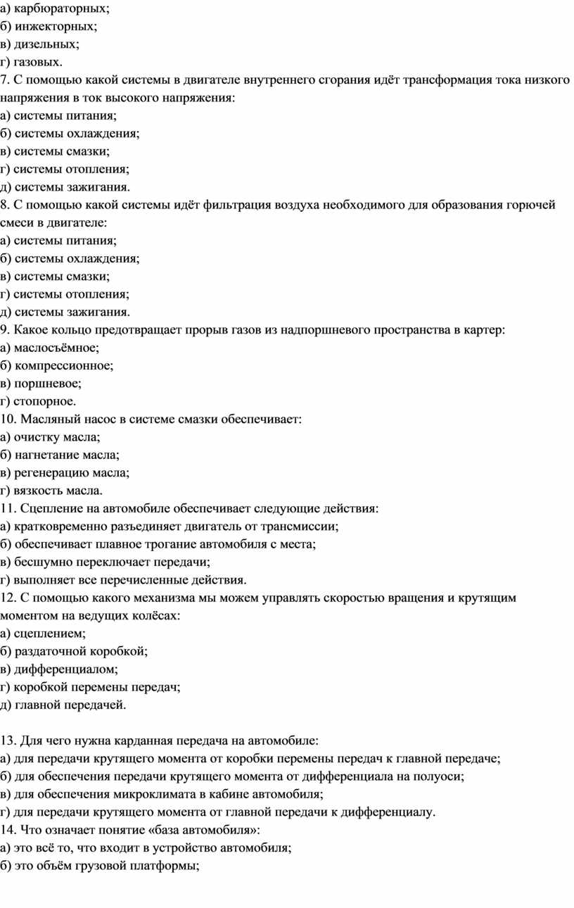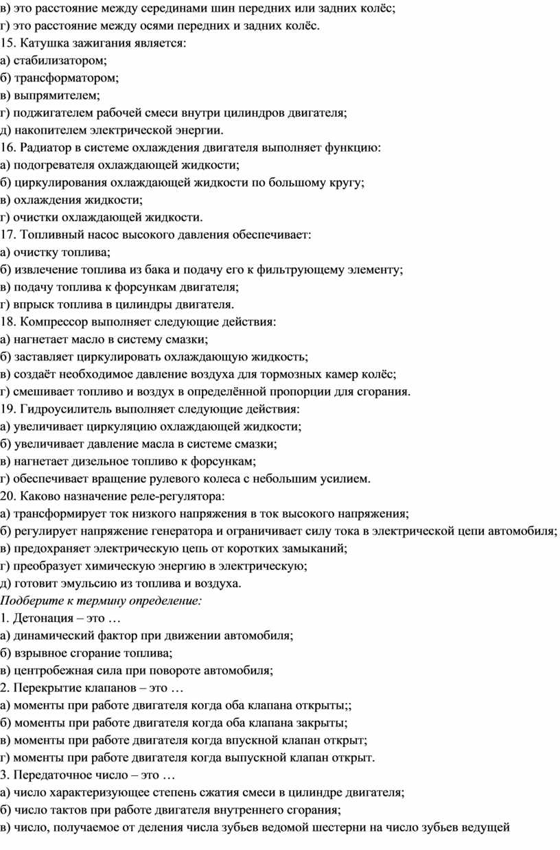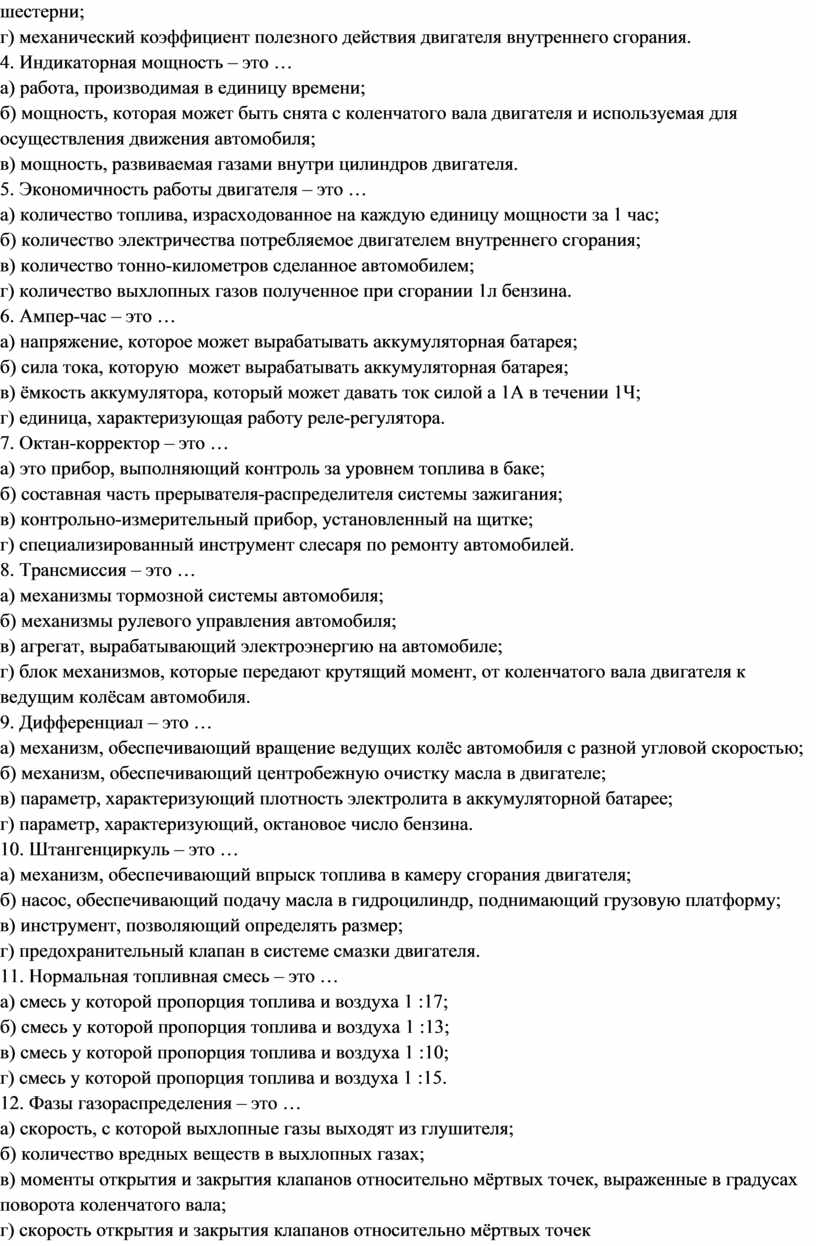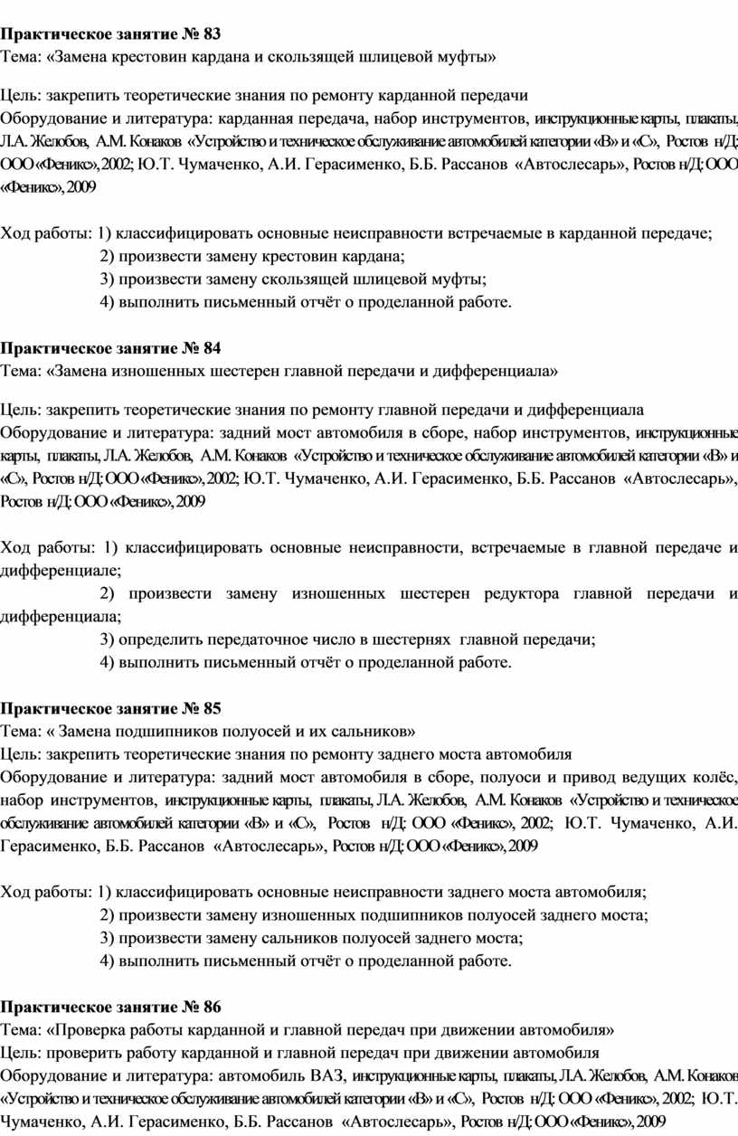 Учебно-методические указания предназначены для обучающихся профессии «Слесарь по ремонту автомобилей». В них изложена примерная тематика практических работ, методические рекомендации для выполнения работ, задания, тесты и контрольные вопросы по вариантам.