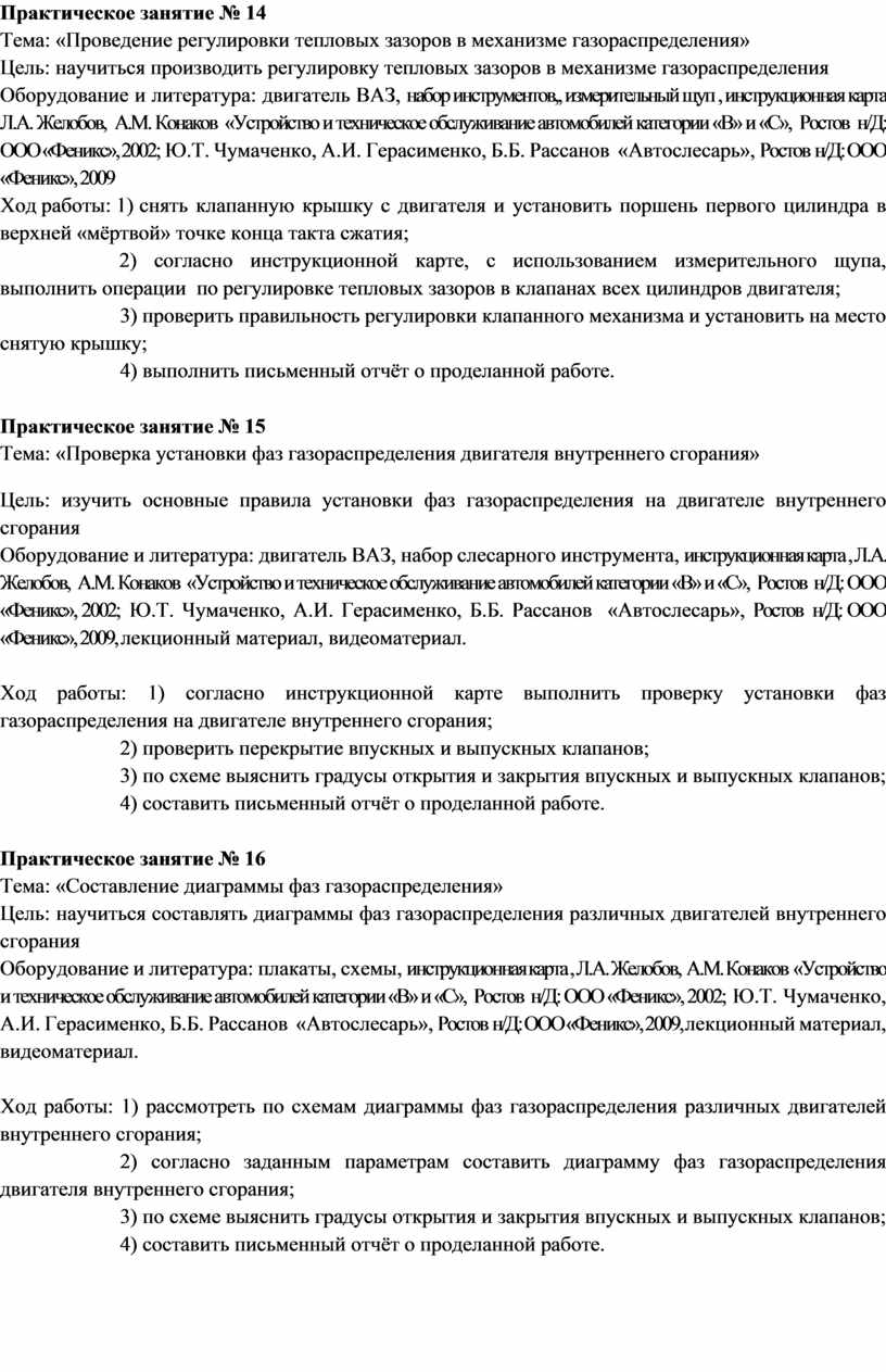 Практическая работа №14 «Проведение регулировки тепловых зазоров в механизме