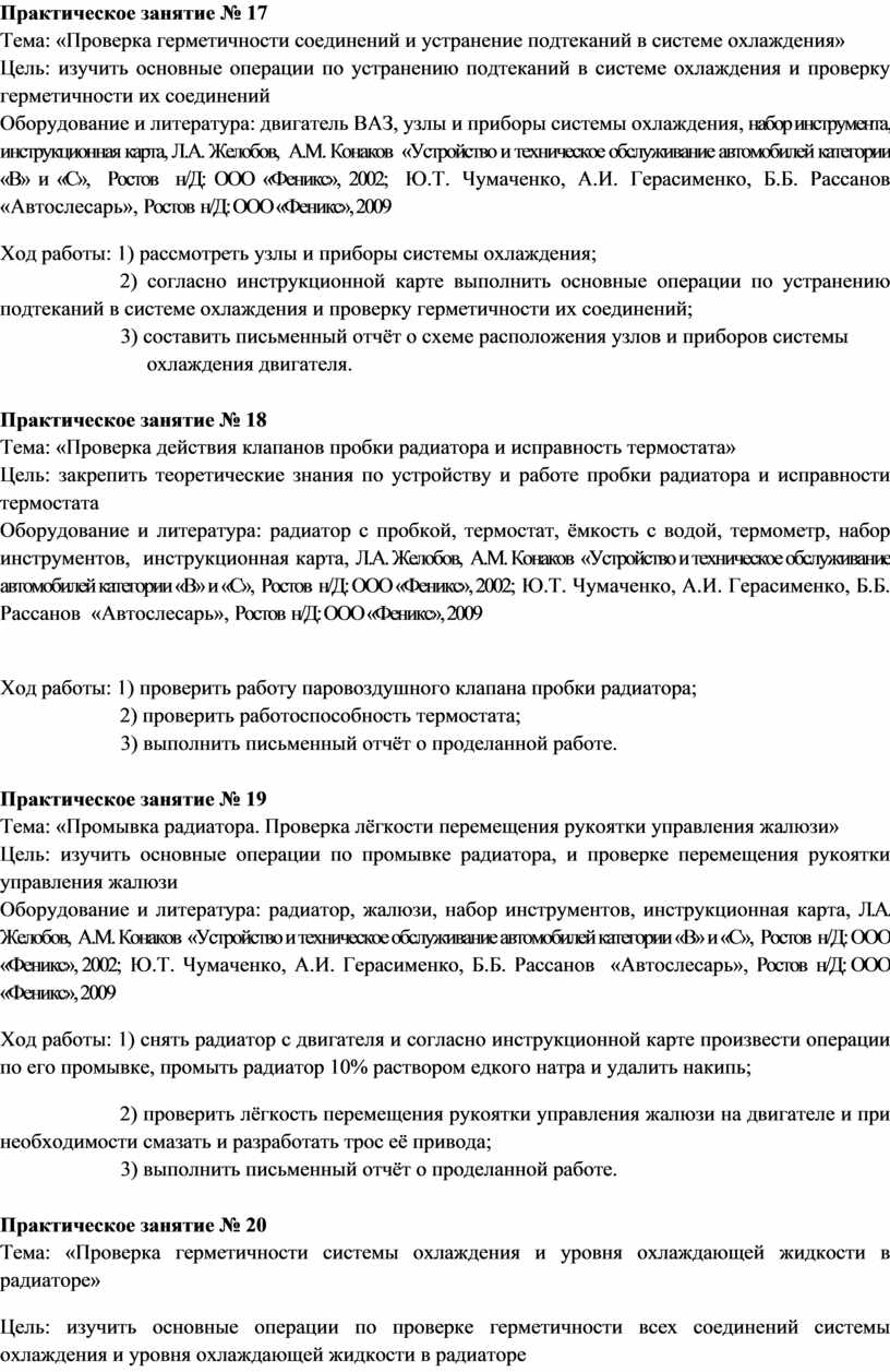 Практическая работа №20 «Проверка герметичности системы охлаждения и уровня